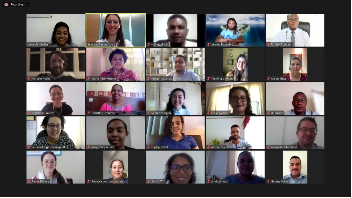 To lead the discussion on the challenges of COP26, UNITAR selected Mr. Marcelo Rocha, an agronomist, land use expert, and lead coordinating author at the IPCC, and Ms. Ana Kleymeyer, former Senior Advisor to the Argentinian Secretary of the Environment. The trainers highlighted the paramount agreements in their history, as well as the terminologies and concepts of climate finance that are beneficial to Small Island Developing States (SIDS), such as Mauritius and Seychelles, in addition to providing background information on the history of COP and UNFCCC.