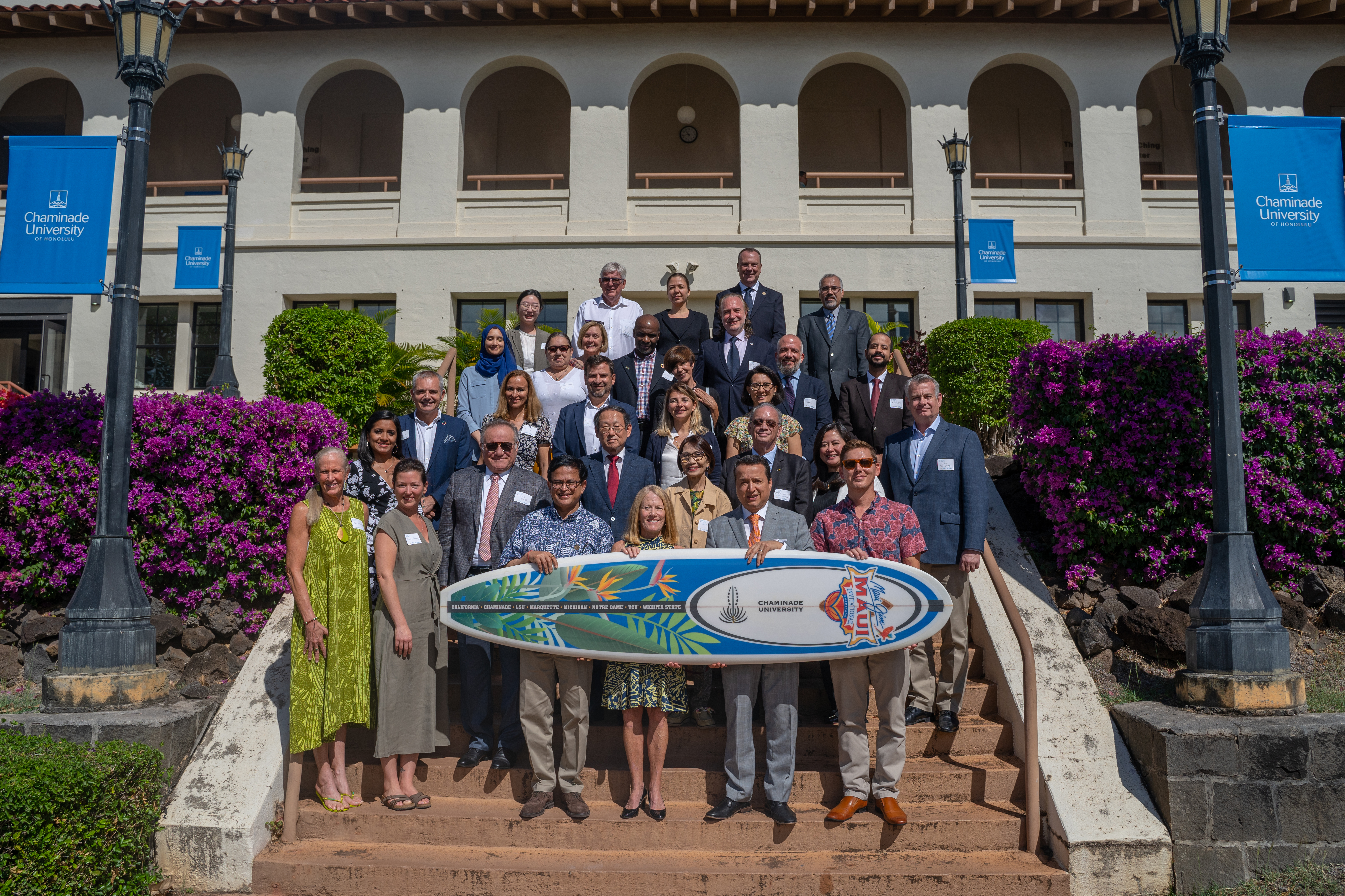 Mr Seth, and Mr Mejia along with UNITAR and CIFAL team members were welcomed through an event hosted by Chaminade University the evening before the meetings commenced. The ceremony began with an Opening Oli, or Hawaiian chant, to welcome the visitors. The CIFAL delegation was addressed by some key speakers, from both Chaminade University and local and national Government Officials. The speeches began with Chaminade Chaplain Fr. Martin Solma, Chaminade President Dr Lynn Babington, and UNITAR Executive Director Mr Nikhil Seth both spoke of the importance of CIFAL Centers, and specifically CIFAL Honolulu in advancing the achievement of Agenda 2030 at the local level. Chaminade Provost and Chairman of the Board for CIFAL Honolulu, Dr Askildson, along with CIFAL Director Dr Grabowsky both spoke to enlighten those present on the journey CIFAL Honolulu has taken since its inauguration in late 2021.