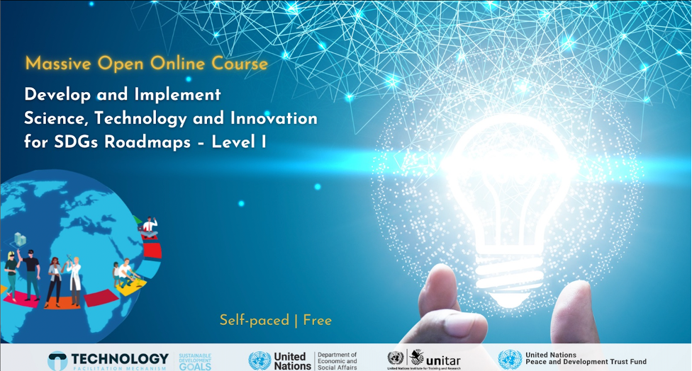 The self-paced Massive Open Online Course "Develop and Implement Science, Technology, and Innovation for SDGs Roadmaps - Level I" was developed by UNDESA and UNITAR to support various stakeholders' capacities in this endeavor by providing key concepts, objectives, multi-stakeholder cooperation modalities, and step-by-step guidance on roadmap development as well as approaches to engage with and mobilize the global community.