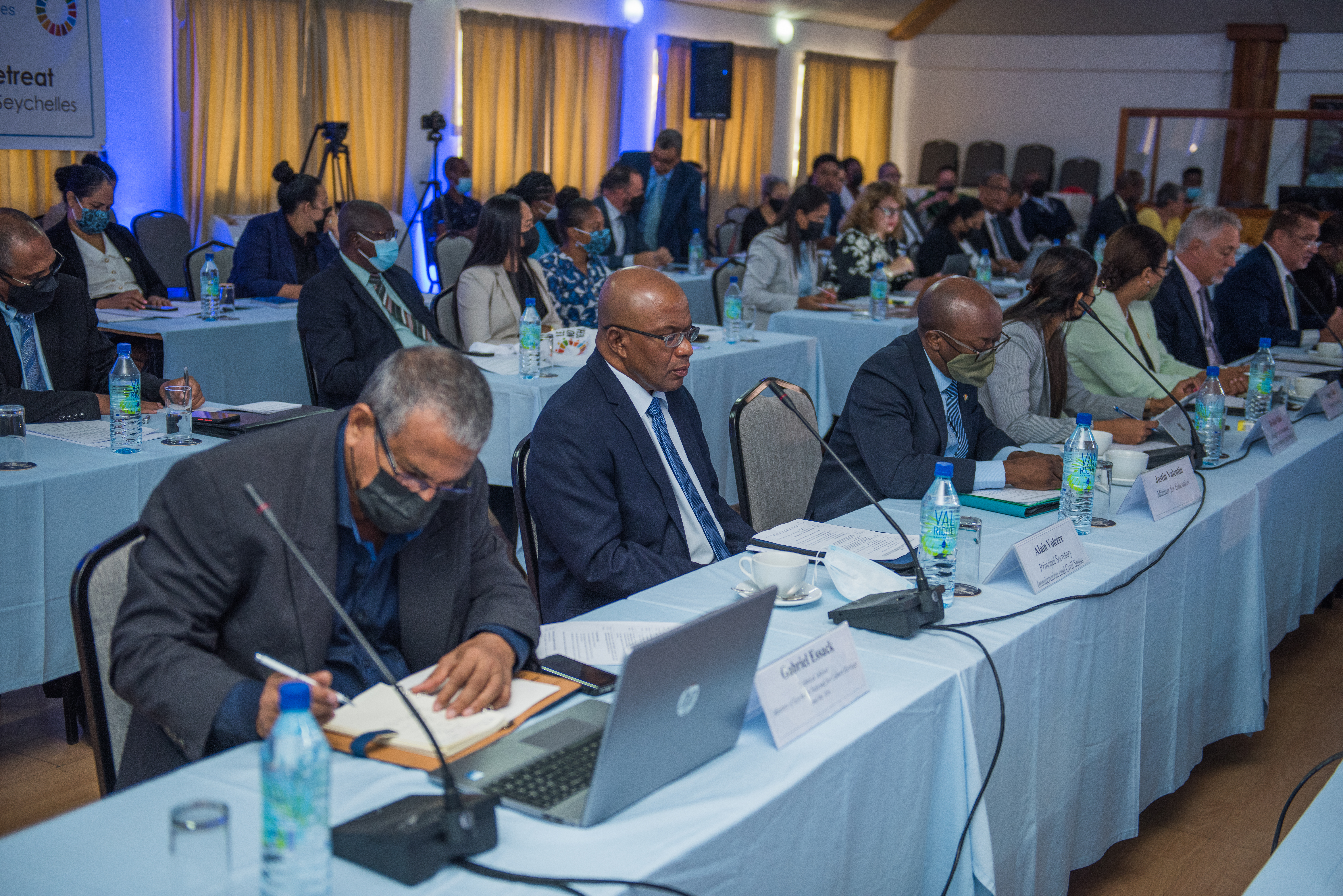 19 May 2022, Victoria, Seychelles – The First Multi-Sector Policy Dialogue between the Government of Seychelles and the United Nations Country Team provided space for discussing areas of focus for the UN’s support for the implementation of national development strategies and SDGs, as well as the areas of focus for the next Strategic Partnership Framework. On this occasion, UNITAR’s representative had an opportunity to present to the Ministers of the Seychellois Government and UN Regional and Country Directors UNDESA-UNITAR’s analytical paper illustrating the use of system thinking and how it can be used to bridge long-term priorities and immediate needs as part of an integrated planning approach.