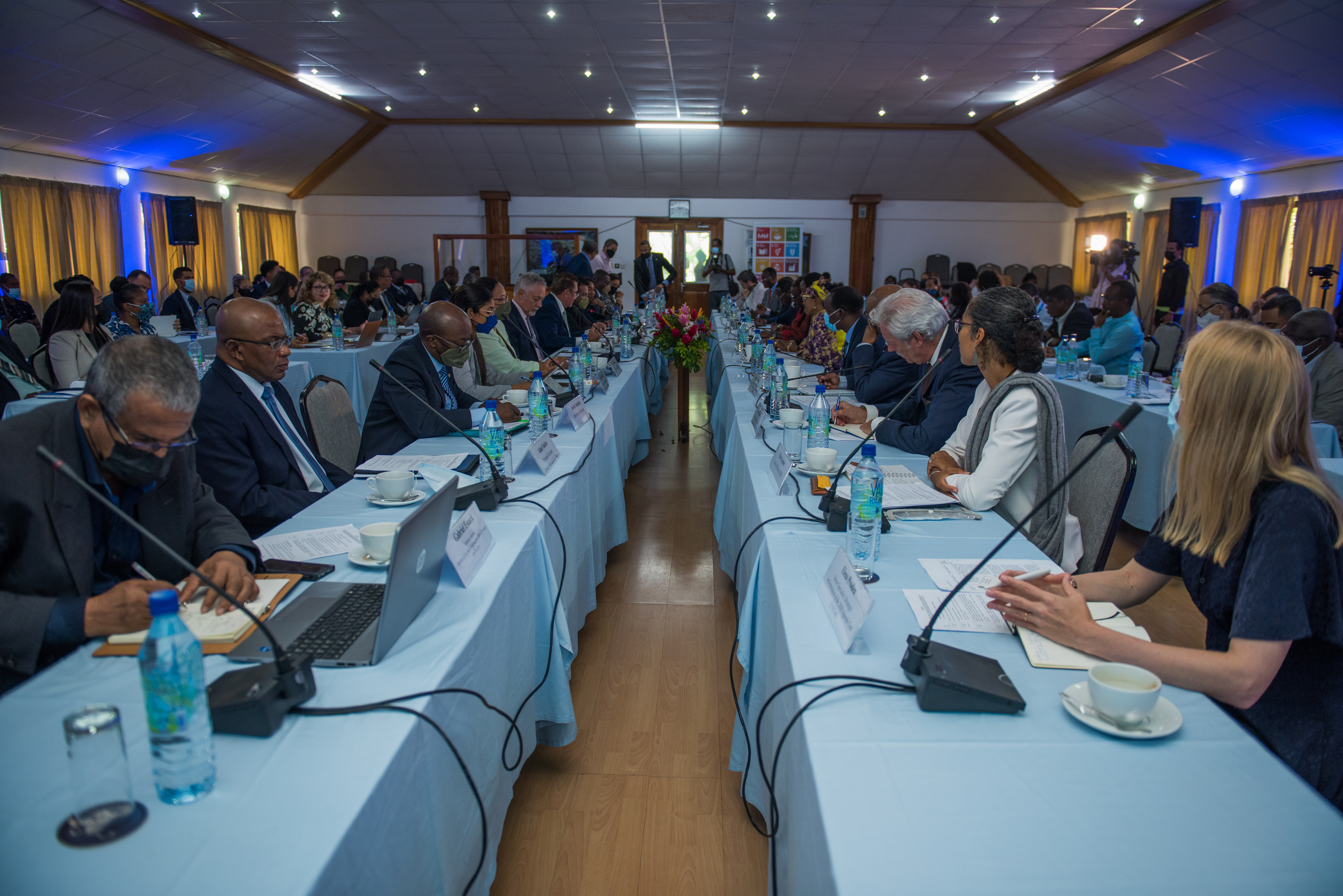 The Policy Dialogue has been preceded by the meeting between the President of Seychelles Mr. Wavel Ramkalawan and UN Regional and Country Directors. It included statements from the participating Ministers led by Minister of Foreign Affairs Mr. Sylvestre Radegonde and Minister of Finance, National Planning and Trade Mr. Ronald Cafrine, and joint statements by UN Directors and Heads coming from a number of UN agencies such as FAO, ILO, IOM, UNAIDS, UNDP, UNESCO, UNEP, UNFPA, UN Women, and WHO. The UNCT’s participation in the Policy Dialogue was led by UN Resident Coordinator for Seychelles and Mauritius Ms. Christine Umutoni.