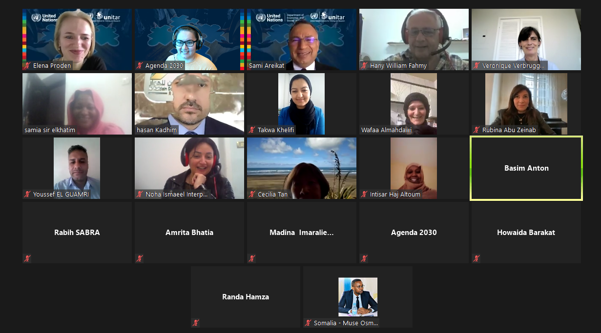 The Strategic Implementation of the 2030 Agenda Unit (2030 Agenda Unit) joined forces with several UN Agencies to support countries in their efforts to link recovery plans with longer-term development priorities and ensure financial resources follow accordingly. From 17th March to 18th April 2021, jointly with the Division for Sustainable Development Goals (DSDG) and Division for Public Institutions and Digital Government (DPIDG) of the United Nations Department of Social and Economic Affairs (UNDESA), UNITAR delivered a facilitated e-learning course “Integrated Recovery Planning and Policy Coherence towards the Sustainable Development Goals (SDGs)” with weekly webinars and exercises to six countries from the Arab region, namely Morocco, Iraq, Sudan, Lebanon, Egypt, and Somalia.