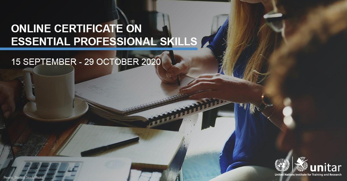 The Division for Multilateral Diplomacy of the United Nations Institute for Training and Research (UNITAR) is pleased to announce its upcoming Online Certificate on Essential Professional Skills taking place this autumn. The online certificate will consist of a series of e-workshops targeted to working professionals and individuals seeking to improve their professional skills, covering an approximate total of 48 hours of online training. The online certificate aims to reinforce individuals’ transferable professional skills, especially in a time where flexibility and adaptability are key.