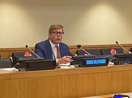 Next to speak was H.E. Ambassador Jukka Salovaara, Permanent Representative of Finland. Ambassador Salovaara spoke on the key issues that were discussed at the Retreat between PGAs. He opined that effective negotiation most often occurs in-person, which facilitated a few challenges considering the COVID-19 pandemic. Ambassador Salovaara praised PGA Bozkir and highlighted the achievements and efficient leadership of his office. He then acknowledged that while the UN has kept all its intergovernmental processes functioning during COVID-19, interactions with stakeholders and civil society have weakened. Ambassador Salovaara stressed the need to encourage increased engagement from the member states and concluded by highlighting the importance of maintaining institutional memory to ensure a stable institution.