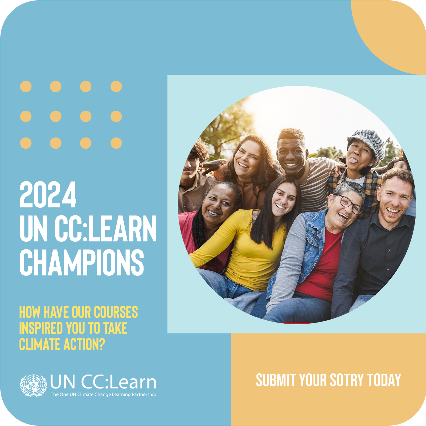 If you have received a certificate of completion from UN CC:Learn, you are eligible to submit your climate story by completing the form below by 30 April 2024. Don't miss the opportunity to become a 2024 UN CC:Learn Champion and have your story spread through our networks!