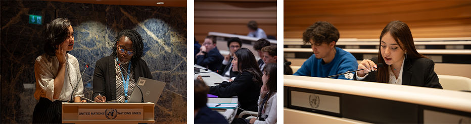 As a celebratory event part of the UNITAR’s 60th anniversary, UN CC:Learn invited four schools from countries that were part of UNITAR’s original Board of Trustees back in 1965 – France, Japan, Kenya and South Africa. Switzerland was invited as the main UN CC:Learn donor and co-creator of the YCD initiative, and the United Arab Emirates, a long-standing YCD partner over the years, came on board to bring its experience from previous dialogues. The French and Swiss schools attended the event in person at Palais des Nations and the other four connected online, allowing for an interactive and global exchange between the six different schools, which otherwise would not have had the opportunity to learn from each other.
