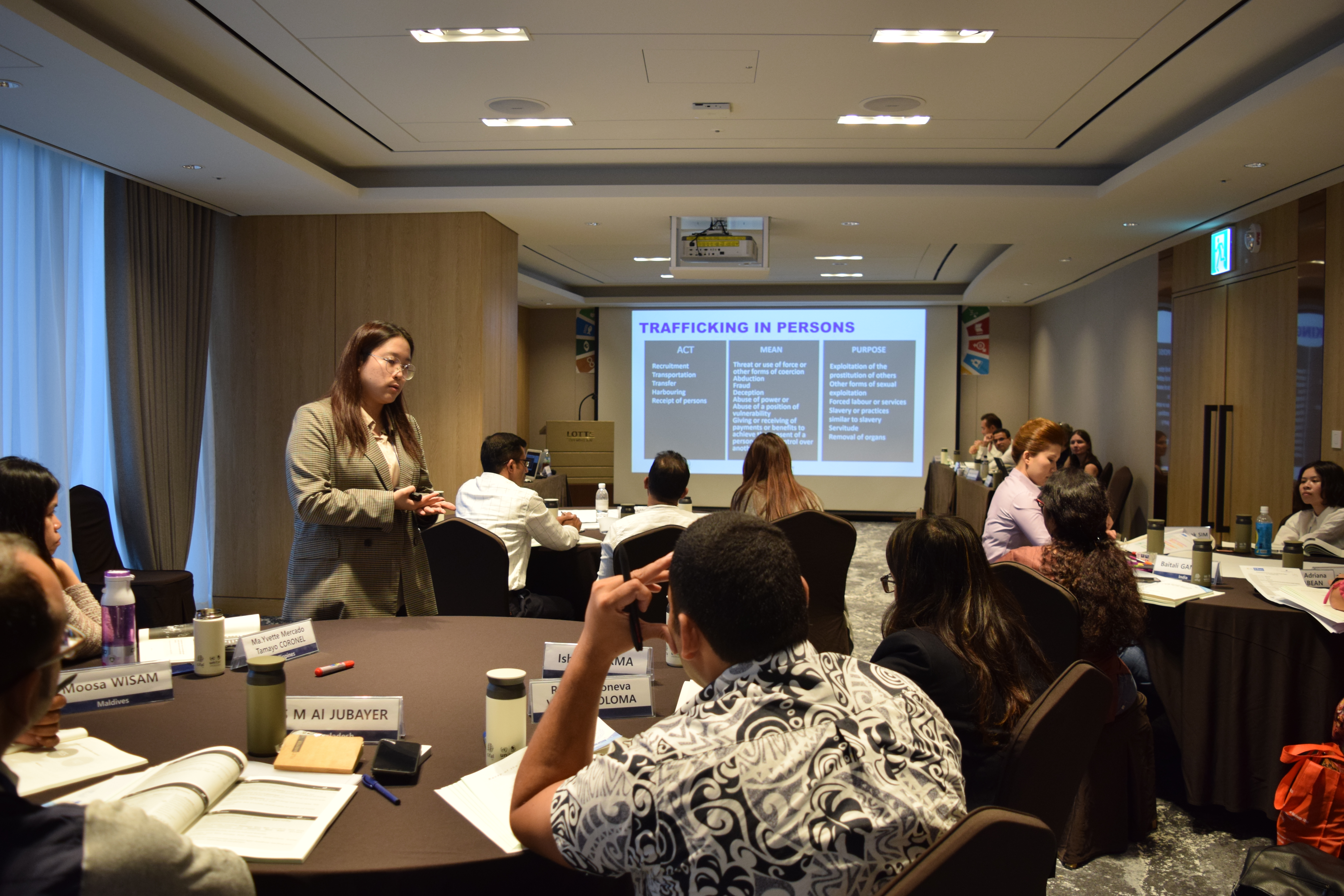 Workshop sessions featured high level speakers, such as Mr. Ali Reza and Ms. Rachel Butler, from RSO; Ms. Rebecca Miller, from the United Nations Office on Drugs and Crime; and Ms. Hyejeong Yoo, from IOM Seoul. During the training sessions, participants actively discussed on the importance of data collection and how to get reliable human trafficking data in order to combat human trafficking. Following the training, participants dialogued on a three-model to address human trafficking crimes: Protection-Prosecution and Prevention. Finally, participants developed an action plan based on what they learned during the workshop. Through their action plans, they were encouraged to find solutions on human trafficking.