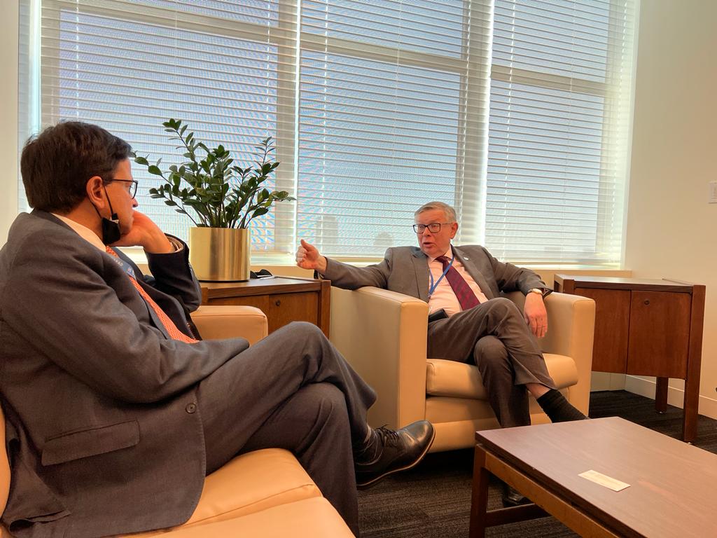 25 April 2022, New York, USA .- During his final meetings in the United Nations Headquarters in New York, the UNITAR Executive Director, Mr. Nikhil Seth met the Deputy Secretary-General Ms. Amina Mohammed to talk about UNITAR’s forthcoming plans including the new Board of Trustees members. Mr. Seth pointed to the need for strengthened coherence of UNITAR programming with broader UN efforts, and the need to help tapping other types of funding. The necessity to find an efficient mechanism for small UN entities to contribute to broader UN efforts was discussed. He called to take actions to work more closely with country teams to support implementation of the 2030 Agenda more effectively.