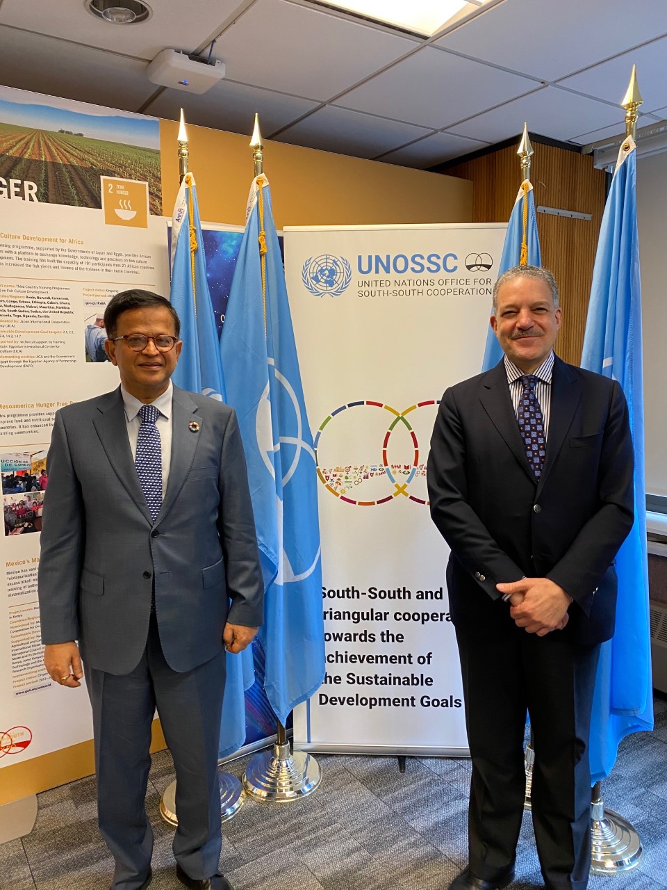20 April 2021, New York, USA – Mr. Nikhil Seth, Executive Director of UNITAR, is visiting New York to discuss strategic matters with officials from the United Nations. During his first day, he had a meeting with Mr. Abdel Abdellatif, Director of the UN Office for South-South Cooperation. The two discussed the cooperation between both offices through the Operational Satellite Applications Programme (UNOSAT) focusing on the use of maps, reports, and data from satellite images to assess the impact of flooding as the most frequent type of disaster. This initiative is to better support and provide technical assistance to Least Developed Countries (LDCs) and Small Island Developing States (SIDS) with the cooperation of the Government of India, South Africa, and possibly China.
