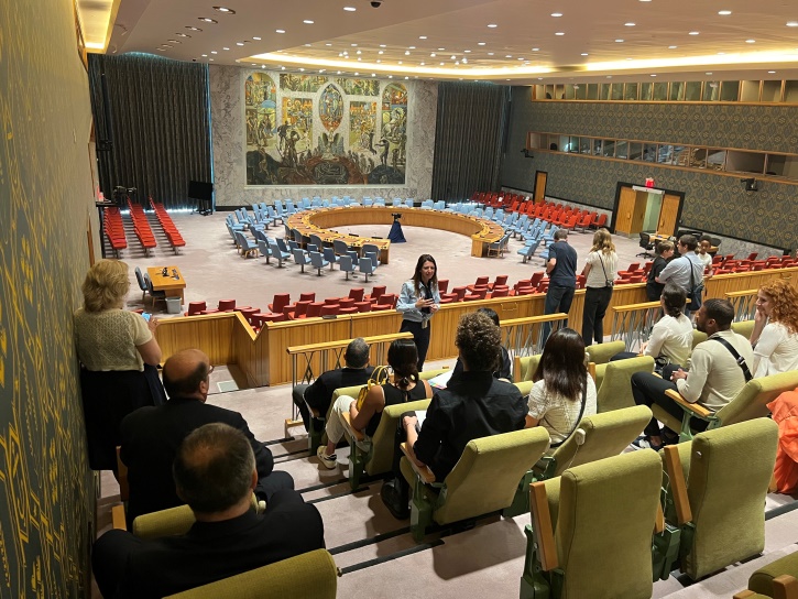 UNITAR was delighted to have the participation of both faculty members and students in the closing ceremony, which was held in a hybrid format. GDI graduates attended the ceremony from various parts of the world, joining in person and virtually. The GDI graduates were joined by course facilitators and the UNITAR team for the opening of the closing ceremony. As part of the event, the graduates had the privilege of exploring the United Nations through a guided tour, allowing them to witness firsthand what they had been studying throughout the semester.