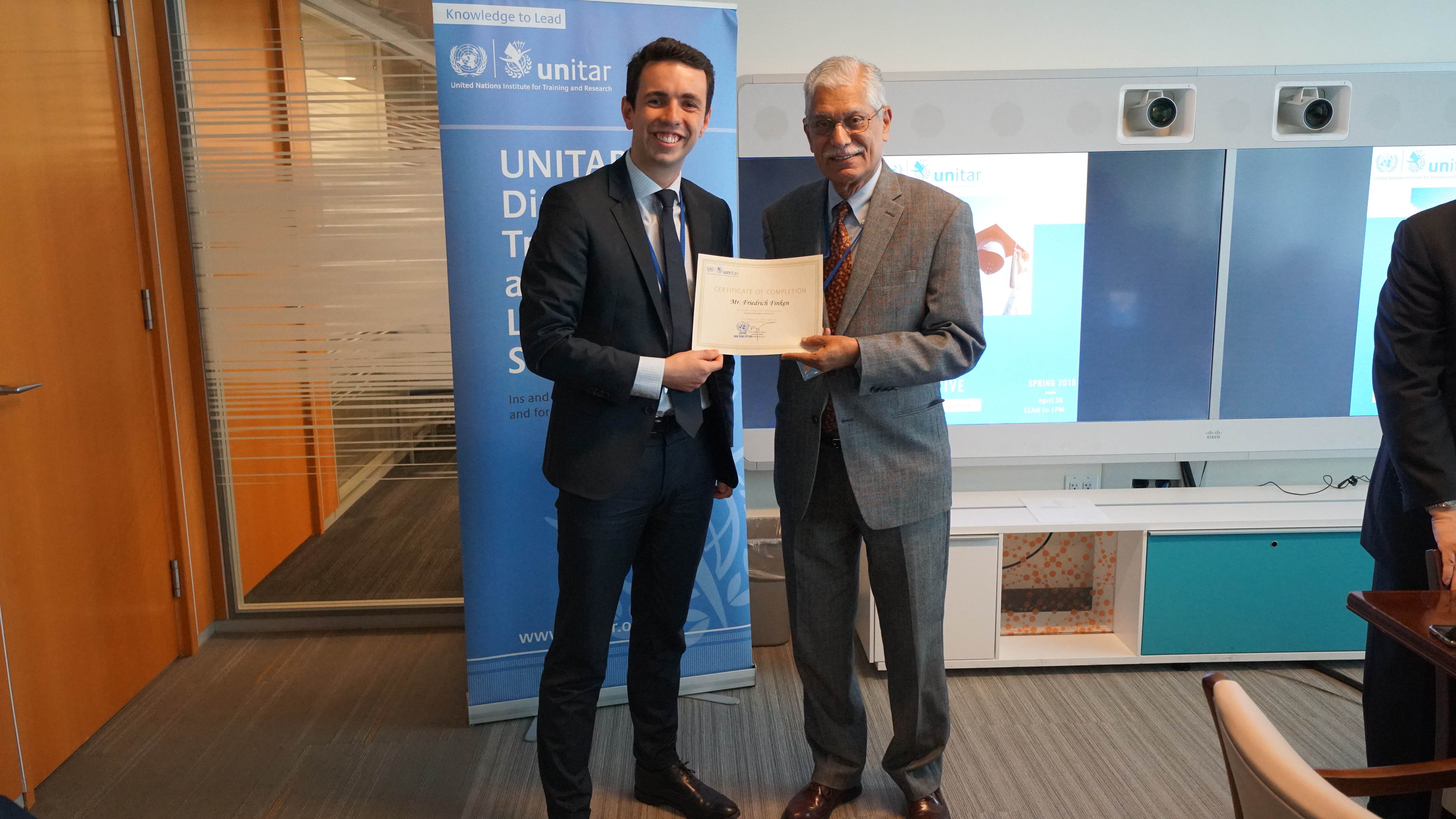 26 April 2019, New York, USA - The United Nations Institute for Training and Research (UNITAR) New York Office hosted the Graduation Ceremony for the first class of its inaugural UNITAR Global Diplomacy Initiative (GDI), a programme dedicated to providing a unique, intimate training experience to students in higher education while utilizing the connections and experience of UN delegates and academics.