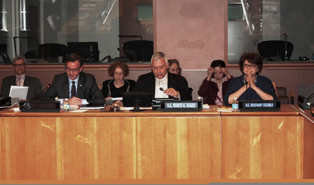 Keynote speaker, Ms. Rosemary DiCarlo, former US Deputy Permanent Representative to the UN and current President of the National Committee on American Foreign Policy, shared her long-term UN experience and reflected on some crucial issues affecting the UN’s future relevance. She spoke on questions of sovereignty, of the responsibility to protect, as well as of a range of peace and security issues on the Security Council agenda. Ms. DiCarlo emphasized that in the UN, “every single country matters” and that a thorough knowledge of the Charter and of the rules of procedure is crucial for the success of a mission’s work at the UN, as is their ability to forge a compromise.