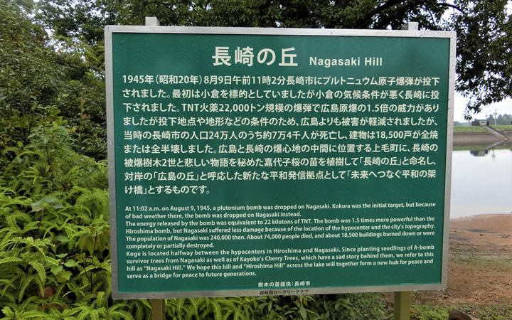 2019921日、日本福岡県上毛町―国際平和デーである921日に、「広島・長崎爆心地中間点上毛町―未来へつなぐ平和の架け橋事業」平和祈念式典が、地理的に広島と長崎の爆心地の中間点である上毛町にて実施されました。事業を主導した錦織亮雄氏は、自身が被爆者であるとともに広島の復興に貢献してきた建築家であり、グリーン・レガシー・ヒロシマ・イニシアチブ(GLH)で長年コミッティー・メンバーを務めています。当事業では、長崎と広島から送られた被爆樹木を上毛町大池公園の池の両サイドにそれぞれ植樹する取り組みであり、昨年度から始まりました。橋のモニュメントが広島サイドと長崎サイドの真ん中に建てられています。
