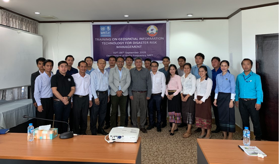 Naturally following the progression of UNOSAT’s rapid mapping services and technical backstopping activities in 2018, UNOSAT and Lao PDR’s Ministry of Post and Telecommunications jointly organized a 5-day introductory training between 02 and 06 September 2019, for Lao government officials in the country’s capital, Vientiane. The event, “Introduction to Geospatial Information Technology for Disaster Risk Management” aimed to build participants’ capacities in the use of GIT for DRR, marking the first time UNOSAT delivered a training workshop in Lao PDR.