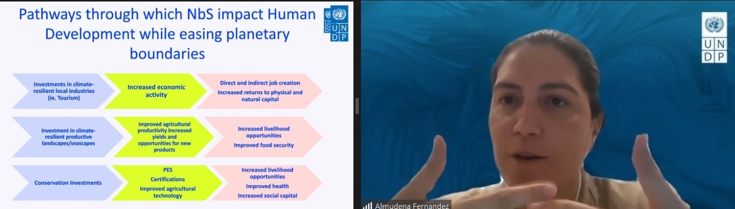 Ms. Almudena Fernández, Advisor to the Director for Latin America and the Caribbean, RBLAC, focused on nature-based solutions and household interactions. She explained in detail how this contributes to transformational change - local action can have global impact. Ms. Fernández outlined the five types asset-based approaches. Prior to Mr. Suazo delivering his closing remarks, there was an interactive Q&A discussion between panelists and participants.