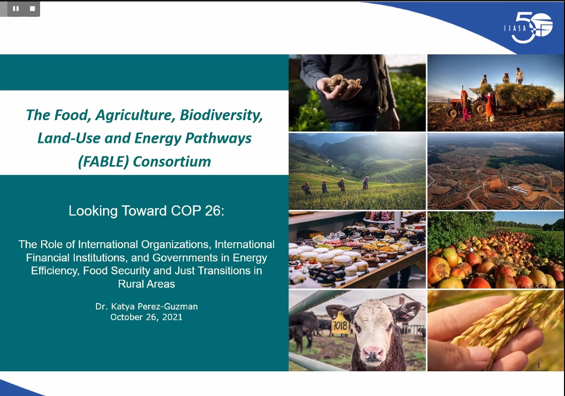 Dr. Katya Perez Guzman, Research Scholar, International Institute for Applied Systems Analysis Ecosystems Services and Management Program, followed next with a talk about Food, Agriculture, Biodiversity, Land-Use and Energy Pathways, also known as FABLE. She explained what the organization is doing to achieve more sustainable pathways. She also talked about the purpose of the organization, analyzing national policy options and international policy procedures.