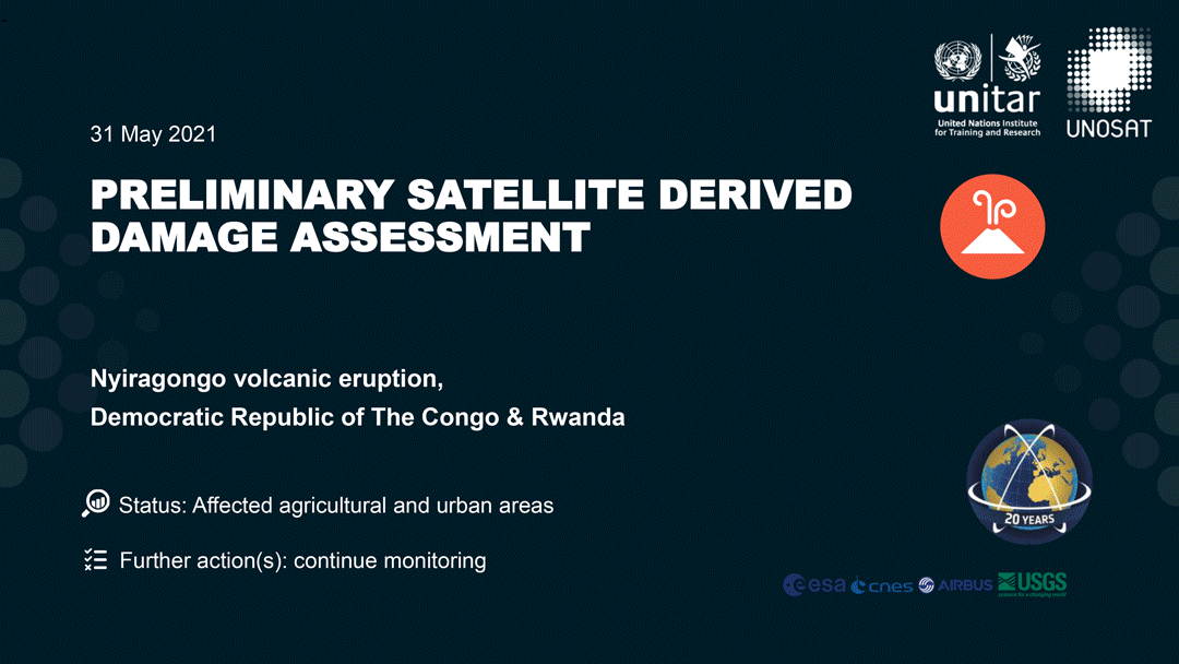 UNOSAT’s rapid mapping service was activated on 23 May 2021 morning by the United Nations Office for the Coordination of Humanitarian Affairs (UNOCHA) in Goma, DRC. The activation covered the area around Goma, DRC, and Gisenyi, Rwanda.