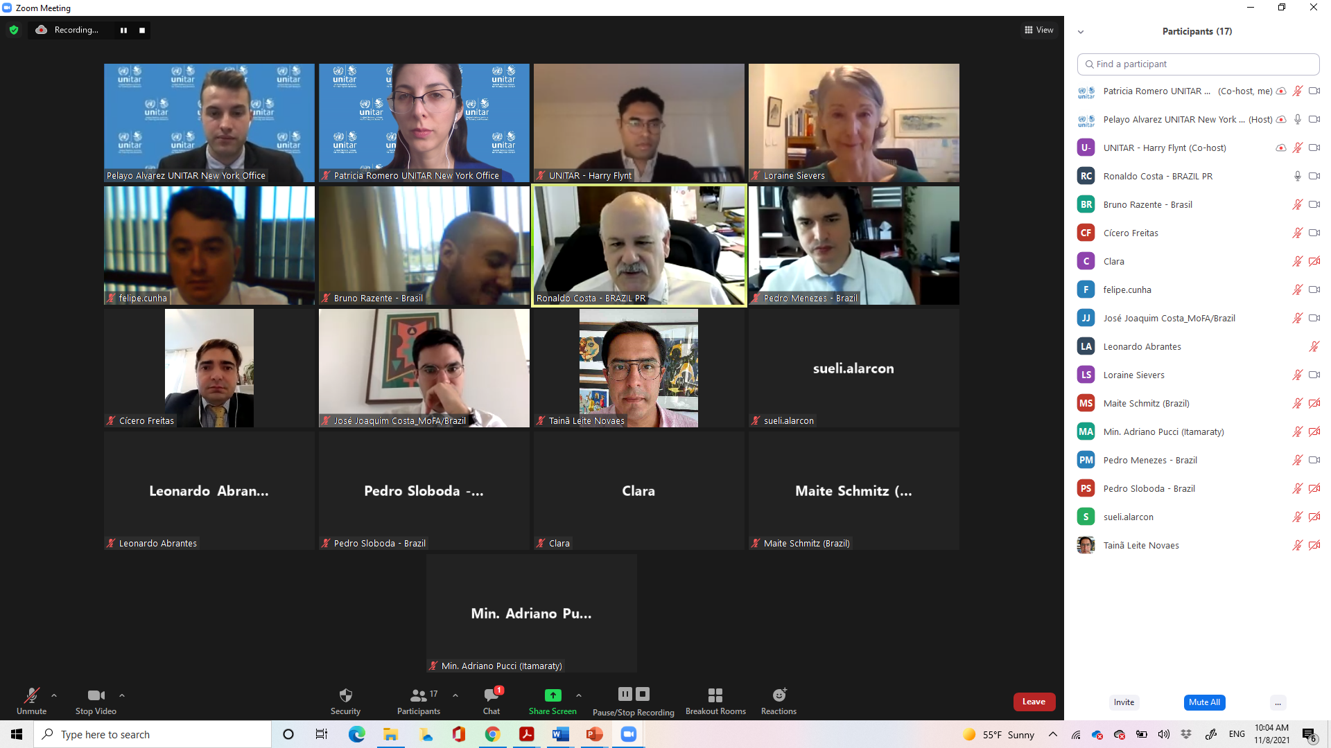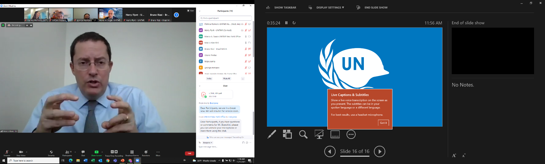 8-15 November 2021, New York, USA - The UNITAR New York office organized a six day private online workshop, "Practical Preparation for Membership of the United Nations Security Council," for the Brazilian delegation of 25 diplomats to the Permanent Mission in New York and the Ministry of Foreign Affairs. With vast experience of working with the Council, Brazil secured 181 out of 190 votes cast during the election of the five non-permanent members to the Security Council (SC), and will serve a two-year term from January 2022 to December 2023. Brazil is a founding member of the United Nations and was present at the San Francisco Conference in 1945. With this new election, it will have served the Council eleven times since 1946.