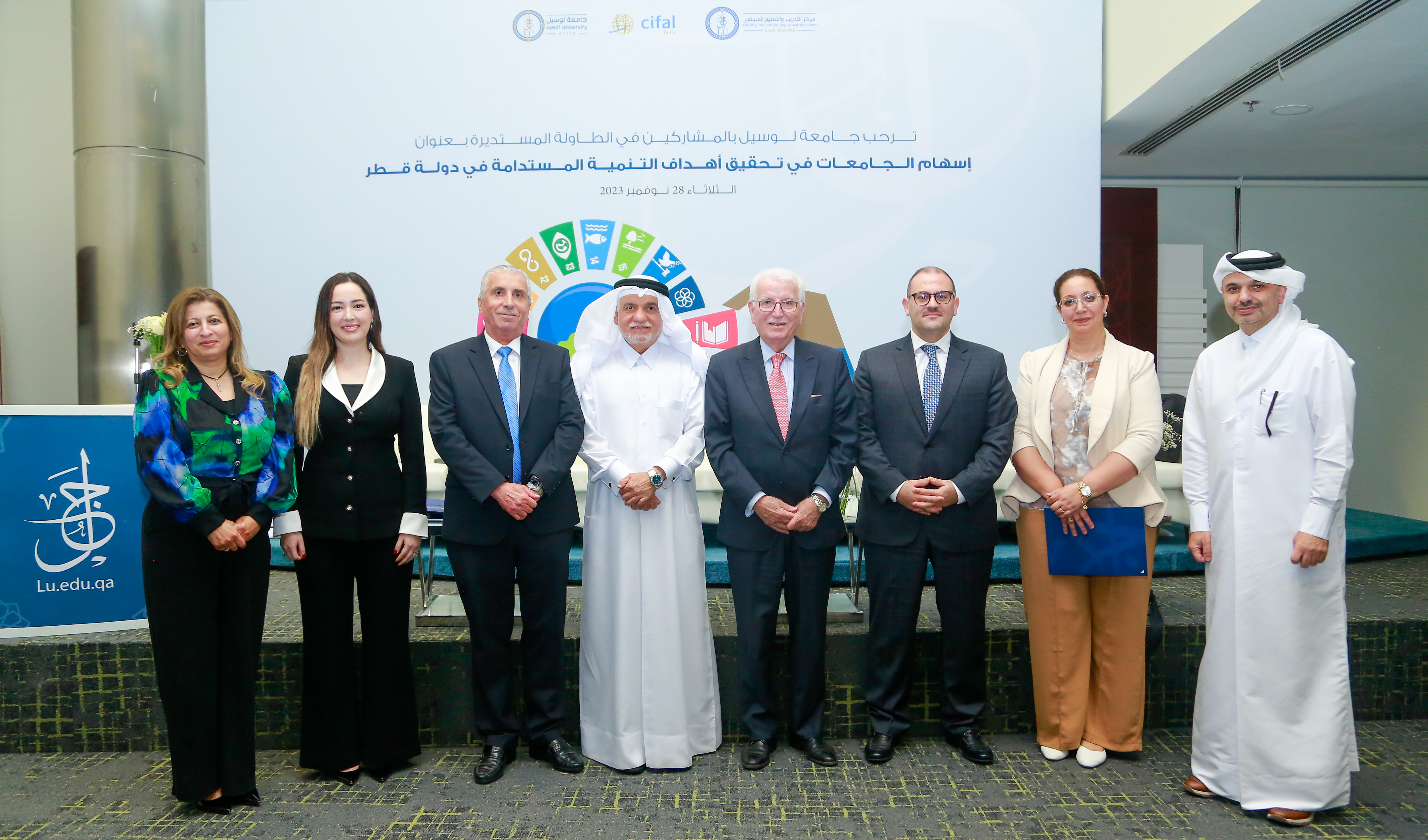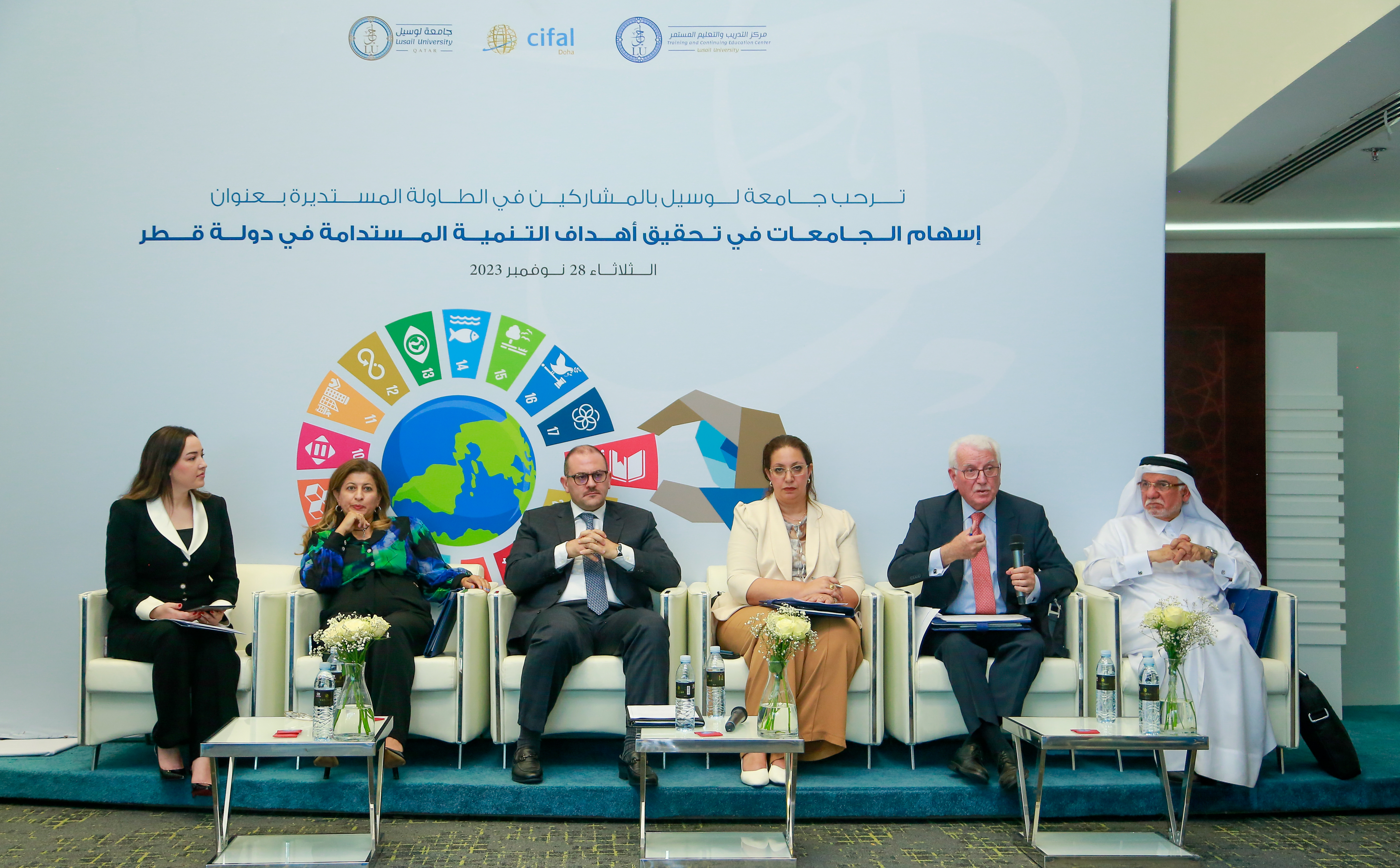28 November 2023, Doha, Qatar - The Training and Continuing Education Center at Lusail University organized a roundtable discussion on "University Contributions to Achieving Sustainable Development Goals in the State of Qatar." This event was part of the collaboration with CIFAL, a network of training centres affiliated with the United Nations Institute for Training and Research (UNITAR). The discussion witnessed distinguished participation from prominent figures in the field of education and sustainable development. Discussions focused on the crucial role of universities and the challenges faced by students in pursuing sustainable development goals in the modern world.