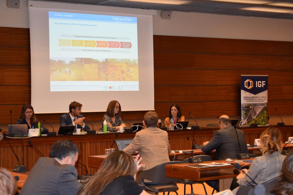 18 October 2018, Geneva, Switzerland – UN Environment and UNITAR launched the Handbook for Developing National ASGM Formalization Strategies within National Action Plans at a side event at the Annual General Meeting of the Intergovernmental Forum on Mining, Minerals, Metals and Sustainable Development (IGF) at the Palais des Nations. The event was attended by IGF member countries, including representatives from ministries responsible for mining, international organizations, the private sector, and civil society.