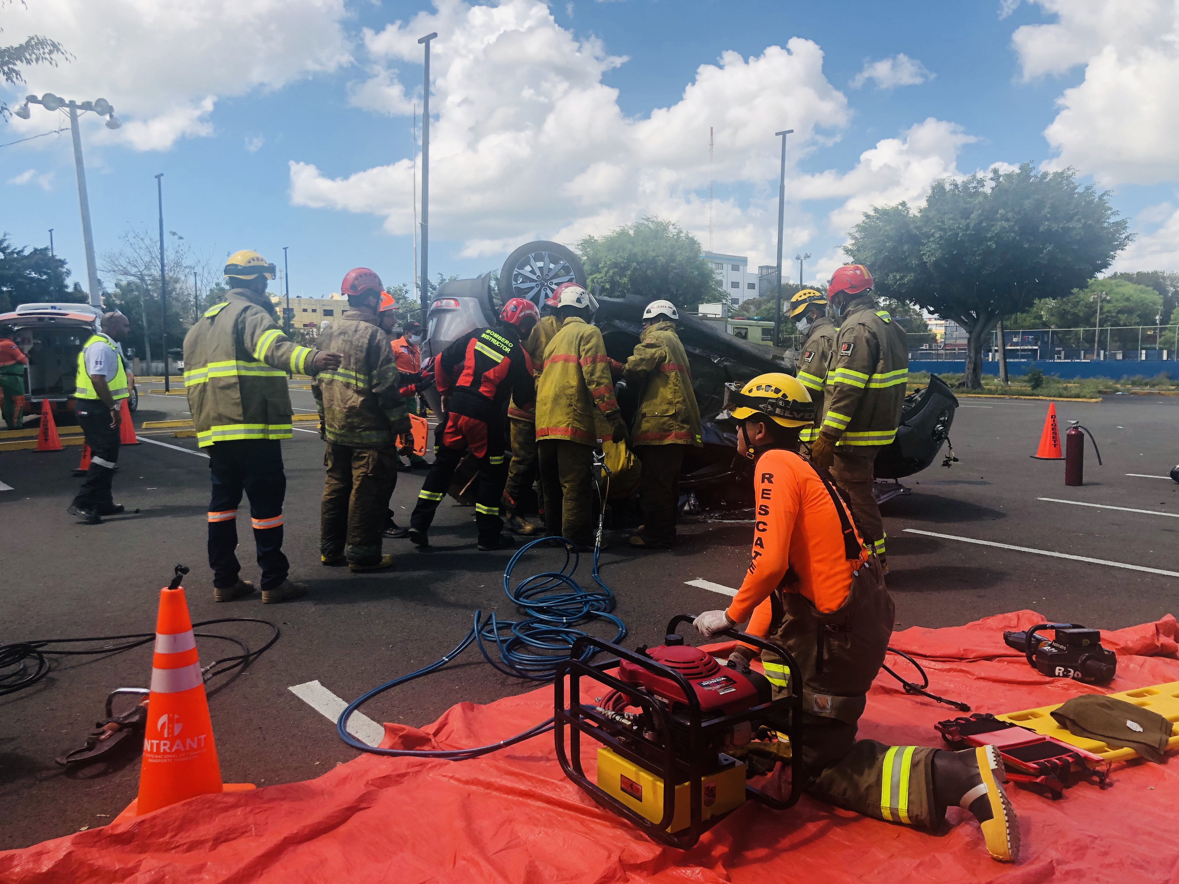 The second day of the training was dedicated to conduct a rescue simulation in the event of a road traffic crash involving children. Officials from the agencies involved in the provision of first professional emergency care in the Dominican Republic participated in the practical training, including INTRANT, the National Road and Traffic Safety Agency (DIGESETT) the local police (COMIPOL), the Ministry of Public Works and Communications (MOPC), as well as officers from the Civil Defense Corps, Fire Fighters Corps and the 911 emergency alert system.