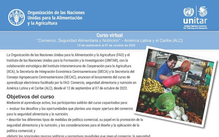UNITAR y FAO lanzan su primer curso en línea conjunto sobre "comercio, seguridad alimentaria y nutrición" para américa latina y el caribe