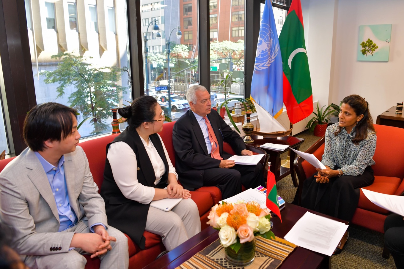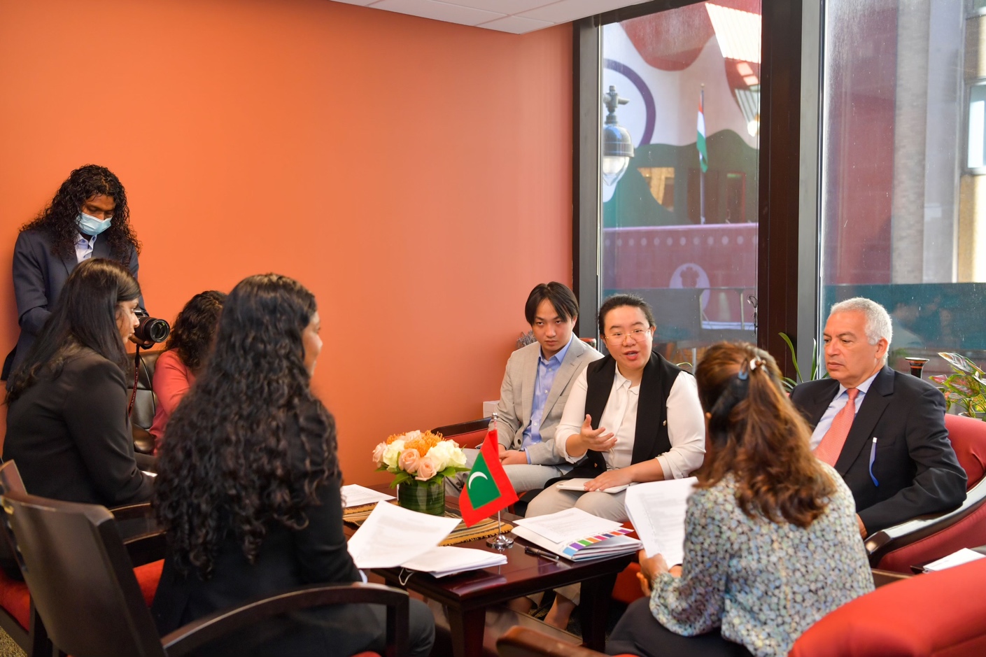 The meeting was attended by H.E. Fazna Ahmed, the First Lady of the Republic; H.E. Thilmeeza Hussain, the Permanent Representative of the Republic of Maldives to the United Nations; Huda Ali Shareef, the Minister Counsellor of the Maldives Mission; Ms. Aminath Raeefa, the Frist Lady’s Personal Aide; Mr. Marco Suazo, the Head of the United Nations Institute for Training and Research (UNITAR) office in New York; Ms. Lucia J. Guo, Executive Director of the GFPA; and Mr. Byron Zhou, the Pianist on the artist roaster of the GFPA.