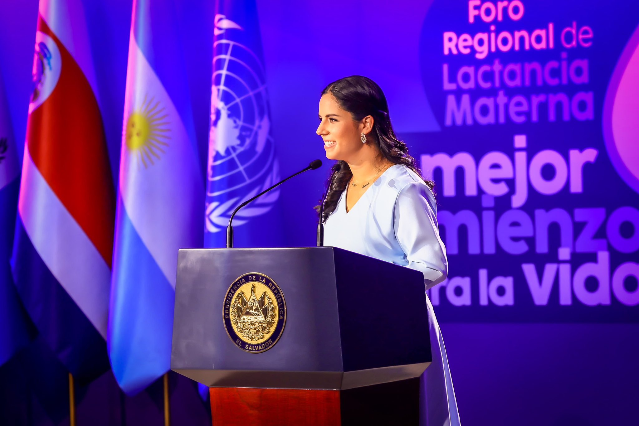 ““Es gratificante saber que con este tipo de espacios como el Foro Regional de Lactancia Materna “El Mejor comienzo para la vida” estamos formando, juntos como región, una comunidad de protectores de la Lactancia Materna y que seguiremos creciendo. Se lo debemos a las presentes y futuras generaciones de nuestros países. Desde este espacio de la ciencia y el conocimiento, queremos compartirles nuestras experiencias y aprendizajes. Que conozcan este nuevo El Salvador y que desde acá nos permitan invitar a trabajar a los que aún no se han unido. Estamos convencidos de que al fomentar, proteger y apoyar la Lactancia Materna, aseguraremos el mejor comienzo para lograr un país que goce de una buena salud y bienestar”, Excelentísima Sra. Gabriela Rodríguez de Bukele, Primera Dama de El Salvador” - Excelentísima Sra. Gabriela Rodríguez de Bukele, Primera Dama de El Salvador