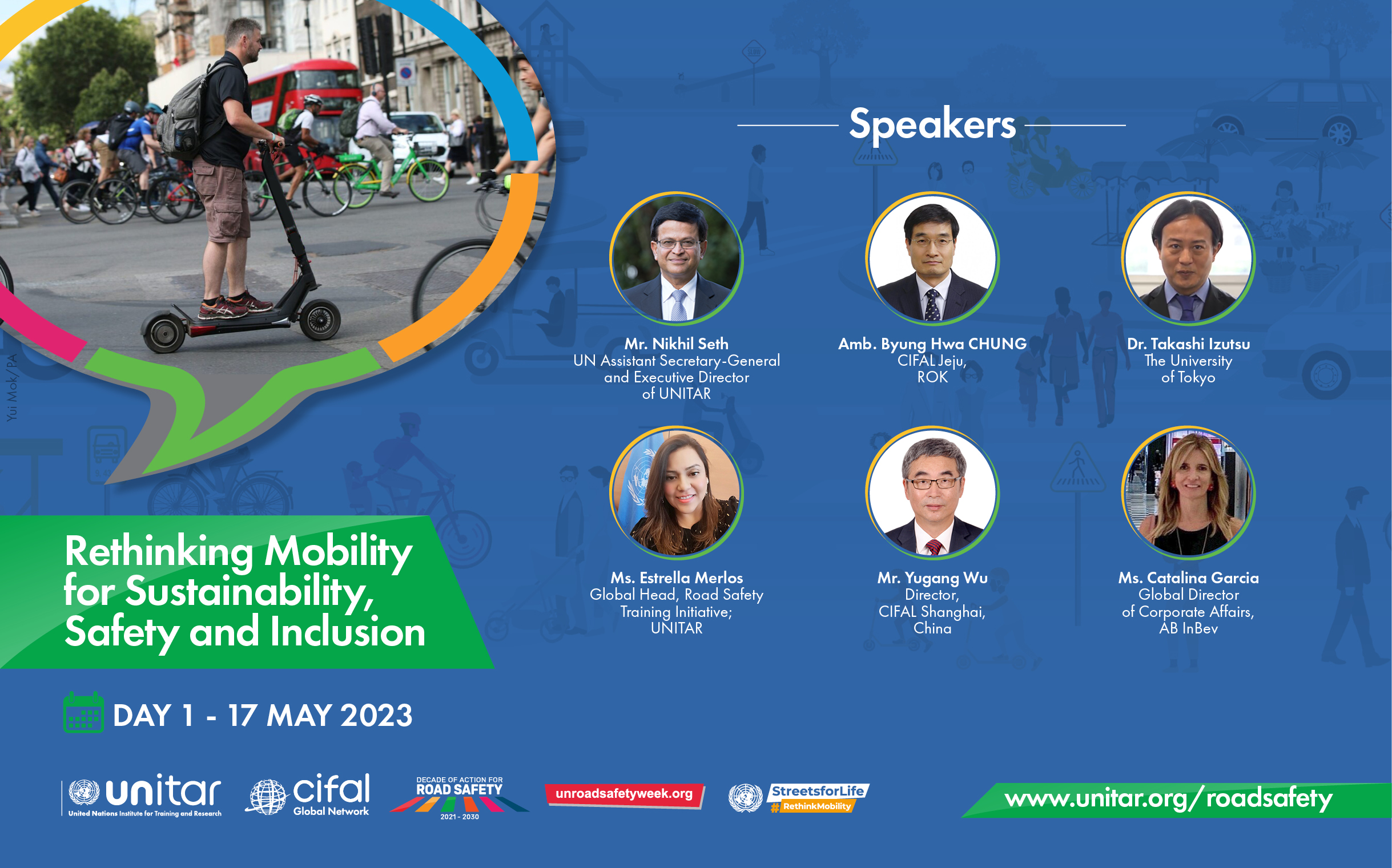 In line with the theme of Road Safety Week, “Rethinking Mobility: Sustainability, Safety and Inclusion, UNITAR and its Global Network of CIFAL Training Centres hosted two online dialogues on 17-18 May 2023 bringing together experts, road safety professionals, representatives from academia, public and private sector and civil society to share practical views and examples on how to make our cities safer, sustainable and inclusive. 125 participants from 64 countries across the globe took part in the events.