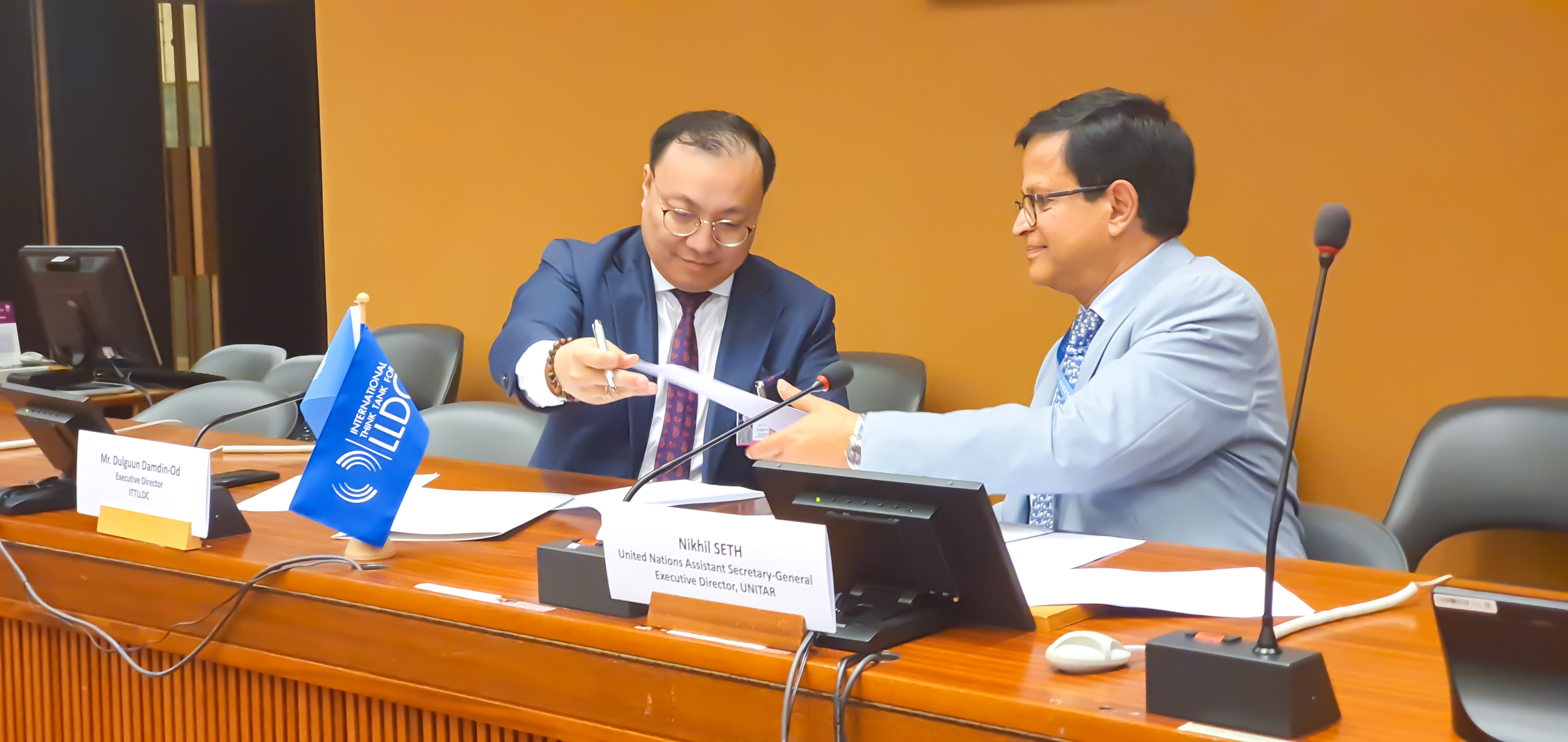 The MoU was signed in Palais des Nations at the United Nations Office at Geneva (UNOG) by Mr. Nikhil Seth, Executive Director of UNITAR, and Mr. Dulguun Damdin-Od, Executive Director of ITTLLDC.