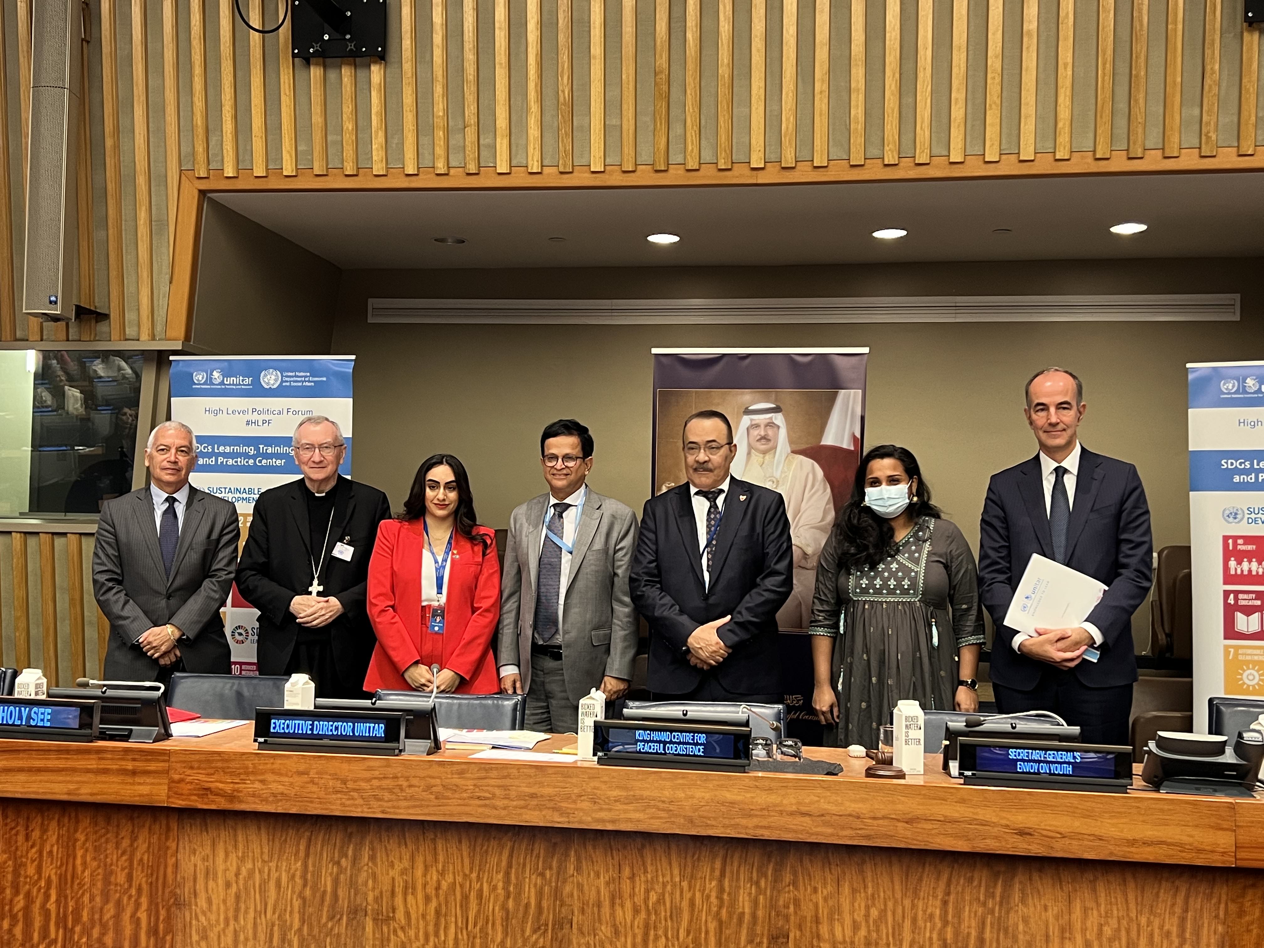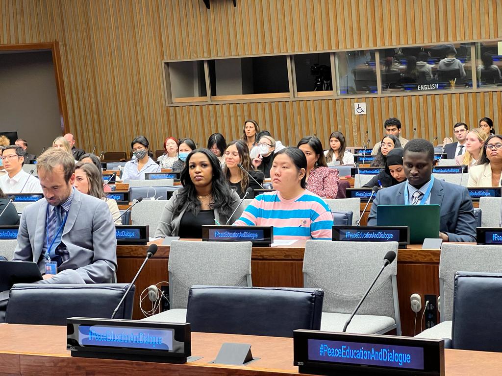 26 September 2022, New York USA – The United Nations Institute for Training and Research (UNITAR) office in New York and the King Hamad Global Centre for Peaceful Coexistence successfully launched the Peace, Education, and Dialogue event on Monday, 26th September 2022. The event aimed at enhancing the understanding of Peace, Education, and Dialogue by focusing on the role of youth for a better future and the Importance of bridging cultures from across the world to coexist peacefully. The event gathered around 100 students from well-renowned institutions such as New York University and Columbia University.