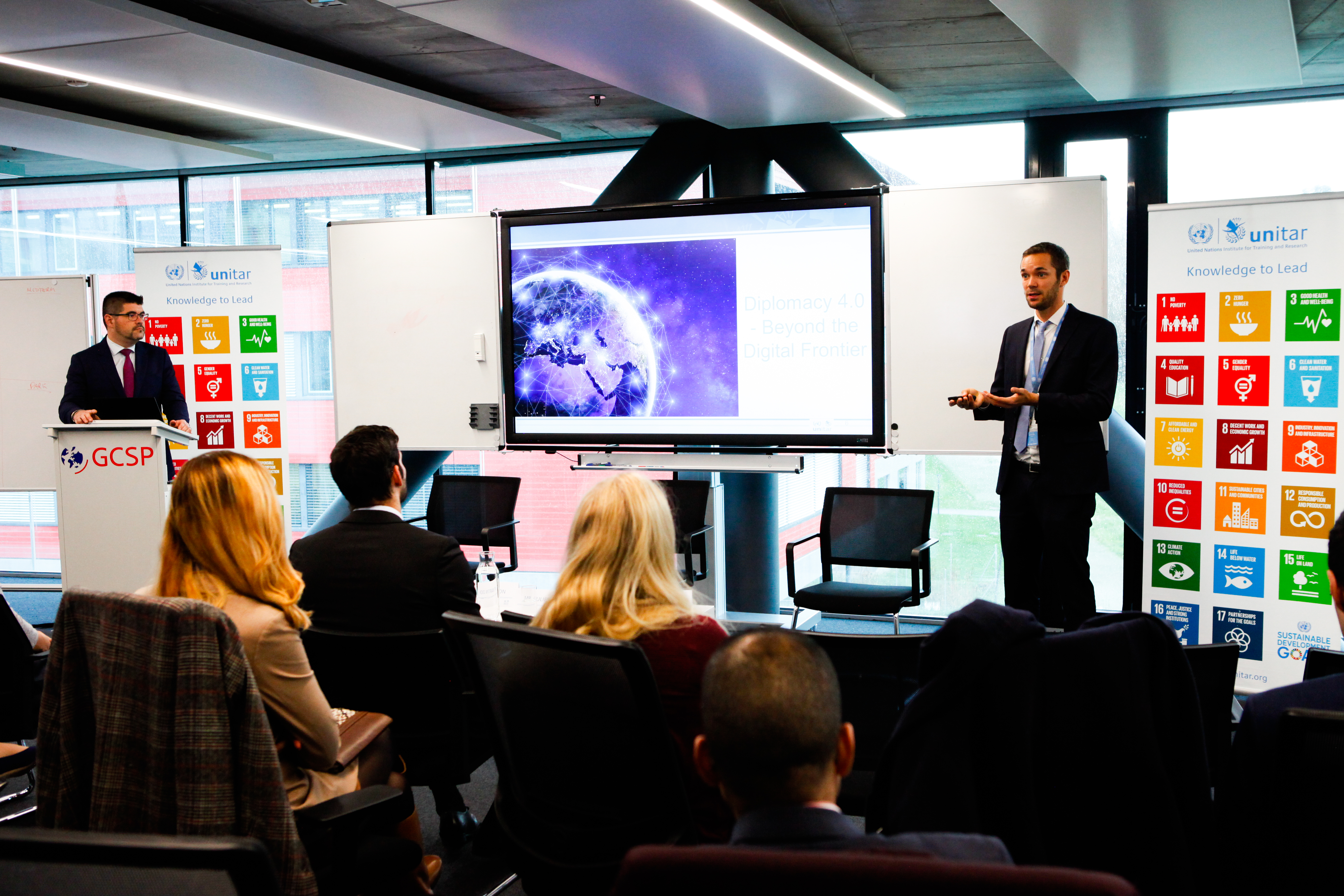 5 November 2019, Geneva, Switzerland- UNITAR, in partnership with Kudelski Security, was pleased to provide a face-to-face training workshop to officials from governments, academia and international NGOs in the context of the Geneva Peace Week 2019. The workshop’s content was Diplomacy 4.0, UNITAR’s new concept addressing the intersection between diplomacy and recent technological and scientific advances. It came just weeks after UNITAR launched its new e-Learning course on Diplomacy 4.0, encompassing modules on neoteric diplomats, digital diplomacy, cyber security, artificial intelligence, internet governance and science diplomacy.