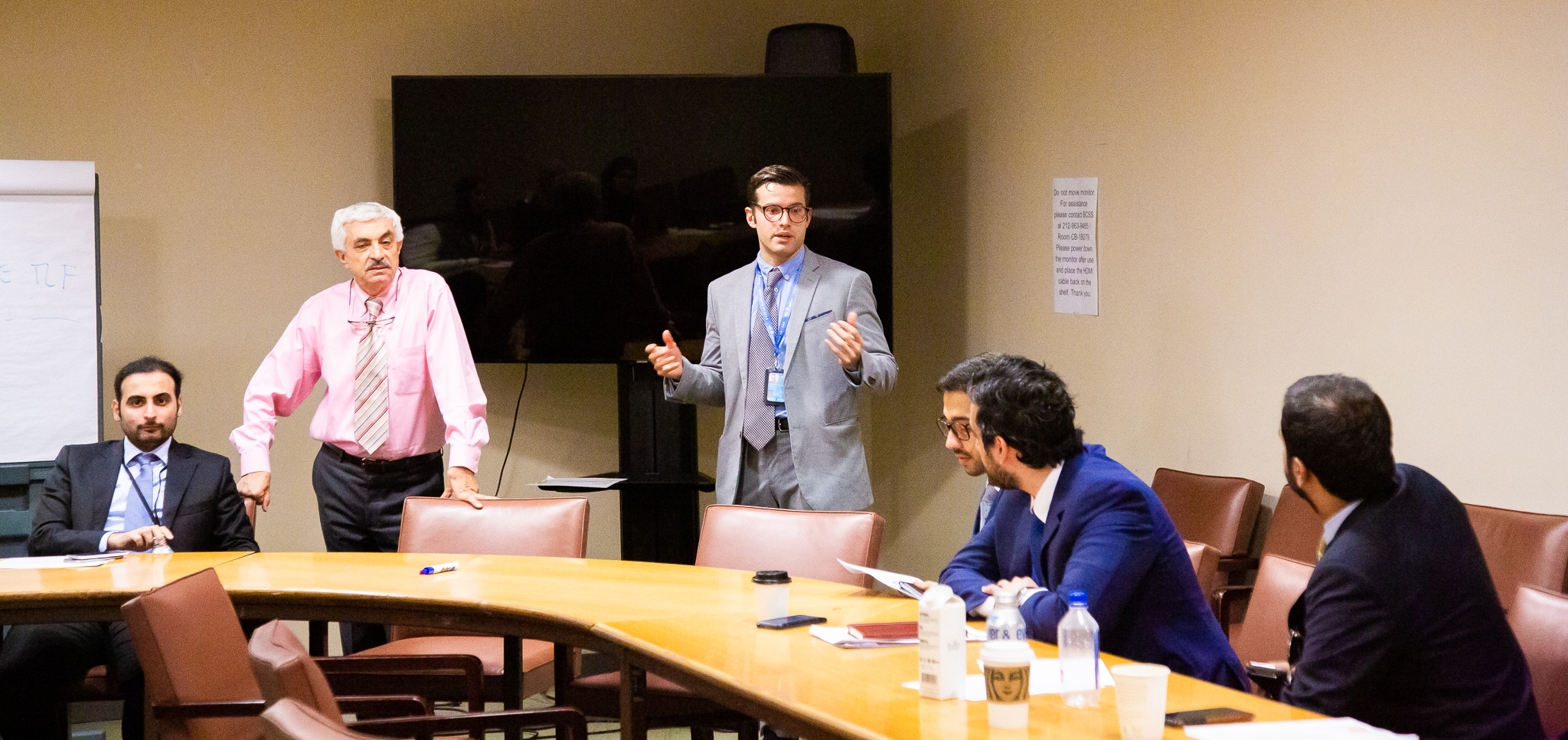 The final day of the training for the Qatari diplomats saw presentations by Dr. Guido Bertucci, President, Governance Solutions International, and Dr. Aldo Civico, Founding Partner and CEO, CIVICO Group, who covered the topics of Diplomatic Negotiations, Conflict Resolution, andCommunication. Dr. Civico began the day by asking the diplomats what they wanted to gain from the training. He then proceeded with an exercise in order to prove that the questions a diplomat asks while discussing a conflict heavily influence the goal and outcome of the discussion. In the final session of the day, Dr. Bertucci focused on Negotiation and Mediation simulations which had the delegates split into different groups representing various African regions as well as the Organization of African Union (OAU). Through this simulation resolving violent conflicts and achieving the best negotiation outcomes were thoroughly explored. Overall, through Dr. Civico and Dr. Bertucci’s course, the delegates examined their weaknesses and strengths in the face of conflict; practised the art of listening and communicating effectively during negotiations; how and when to involve third parties during negotiations (Lawyers, Mediators; Agents, etc.); approaches to agreements which would lead to conflict resolutions and the work of observers in the mediation processes.
