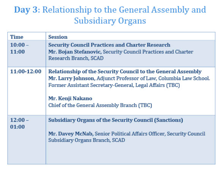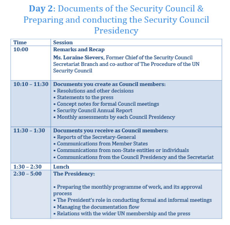 The core programme structure will cover the following areas, and will be adjusted as requested by the newly elected members of the Security Council as per their needs.