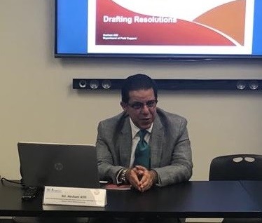 Photo 3: Mr. Hesham Afifi, Chief of the Reimbursement Policy and Liaison Section in the Field Budget and Finance Division of the Department of Field Support, discussing diplomatic report writing and resolutions, rules and procedures and drafting.