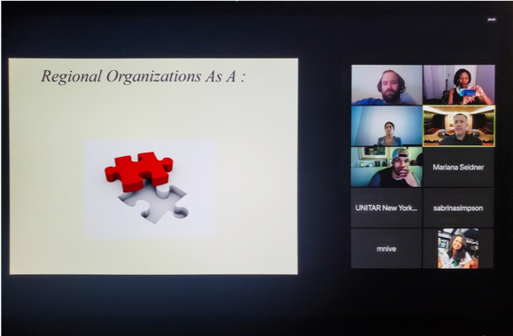 On 20 March 2020, via a video conference, Dr. Angelov offered the next training on the topic of ‘Regional Organizations and Conflict Resolution”. Here, he examined the role of regional organizations in conflict resolution, while focusing on the specific and ever-evolving division of labor, based on comparative strengths and weaknesses, between the United Nations and regional organizations. In both classes, the Spring Session GDI participants joined the lectures from various parts of the Tri-State Area (New York, New Jersey, and Connecticut), Washington DC, Chicago, the United Kingdom, and Saudi Arabia. As hoped for, the classes were very interactive, despite the unusual circumstances as countries worldwide battle the effects of the COVID-19 pandemic.