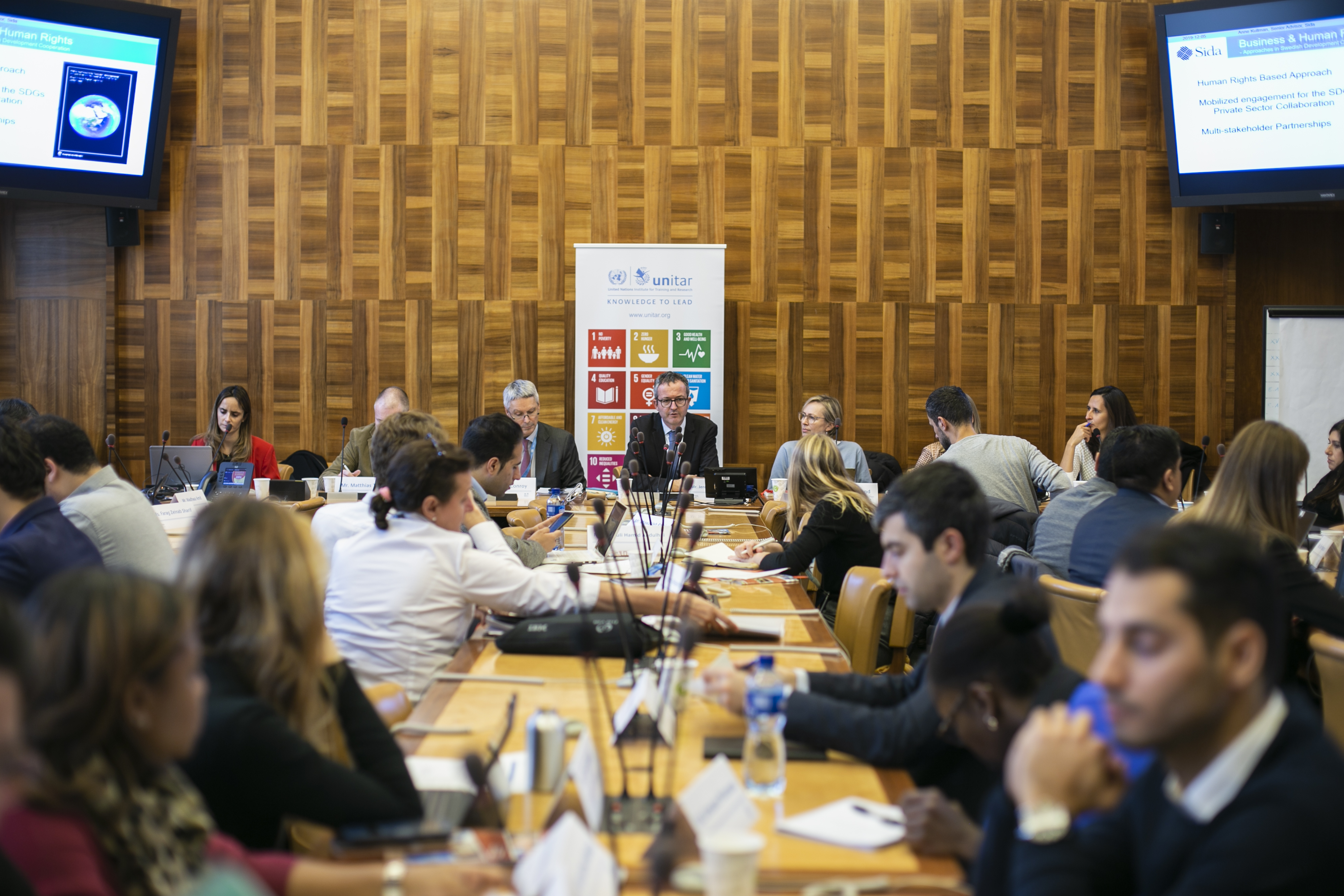 9 December 2019, Geneva, Switzerland - UNITAR’s Division for Multilateral Diplomacy delivered a two-day workshop entitled Business and Human Rights: Key to Achieving the SDGs on the 5th and 6th of December at the Palais des Nations in Geneva, Switzerland, with some 60 participants from governments, business, civil society and other stakeholders. The overall objective of the workshop was to help participants gain a thorough understanding of the Business and Human Rights agenda and provide leadership perspectives on the potential and challenges to implement the UN Guiding Principles as an essential means to achieving the Sustainable Development Goals (SDGs).