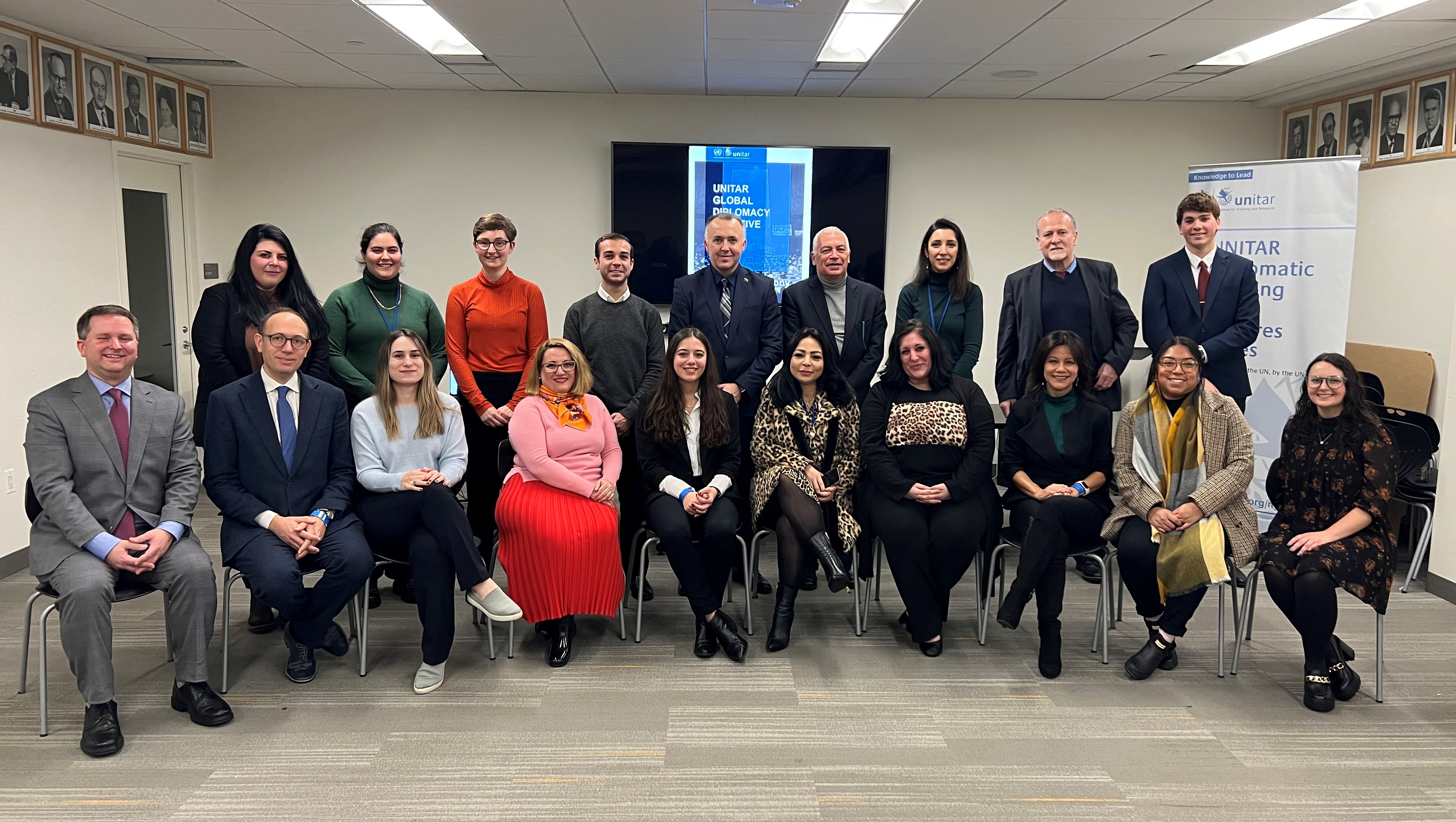 For the first time since the COVID-19 pandemic, UNITAR held the closing ceremony in a hybrid format. GDI graduates joined us from around the world both in-person and virtually. The graduates had a tour of the UN, where they had the chance to see and experience what they have been learning about for the past semester. After the tour, the graduates were joined by both course facilitators and UNITAR staff at their ceremony. They were joined by: Ms. Jelena Pia-Comella, Former Deputy Permanent Representative of the Principality of Andorra to the United Nations, Senior Consultant, Ms. Larisa Schelkin, MS PE, MS CS, CEO & Founder, Global STEM (Science, Technology, Engineering, and Math) Education Center, Inc. and President, Global STEM Education Consulting, LLC; Dr. Michael Jabot, Department of Curriculum, and Instruction at The State University of New York at Fredonia; Dr. Angel Angelov, Head of the Middle East and North Africa Directorate, at the Bulgarian Ministry of Foreign Affairs and UNITAR Facilitator; H.E. Dr. Yuriy Sergeyev, Former Permanent Representative of Ukraine to the United Nations; H.E. Mr. Laszlo Molnar, Senior Lecturer of Clinical Practice of New Jersey City University at the Department of Professional Security Studies, and Former Permanent Representative of Hungary to the United Nations; Ms. Holly White, United Nations Development Programme, Human Resources Specialist – Central Recruitment, and Ms. Michele Clarke-Ceres, Co-Founder/President, WorldCeres Inc. Executive Career Coach, Soft Skills Trainer - Diversity, Equity, and Inclusion Consultant.