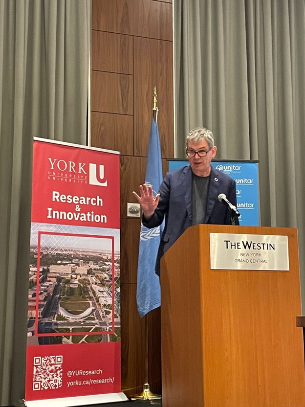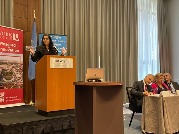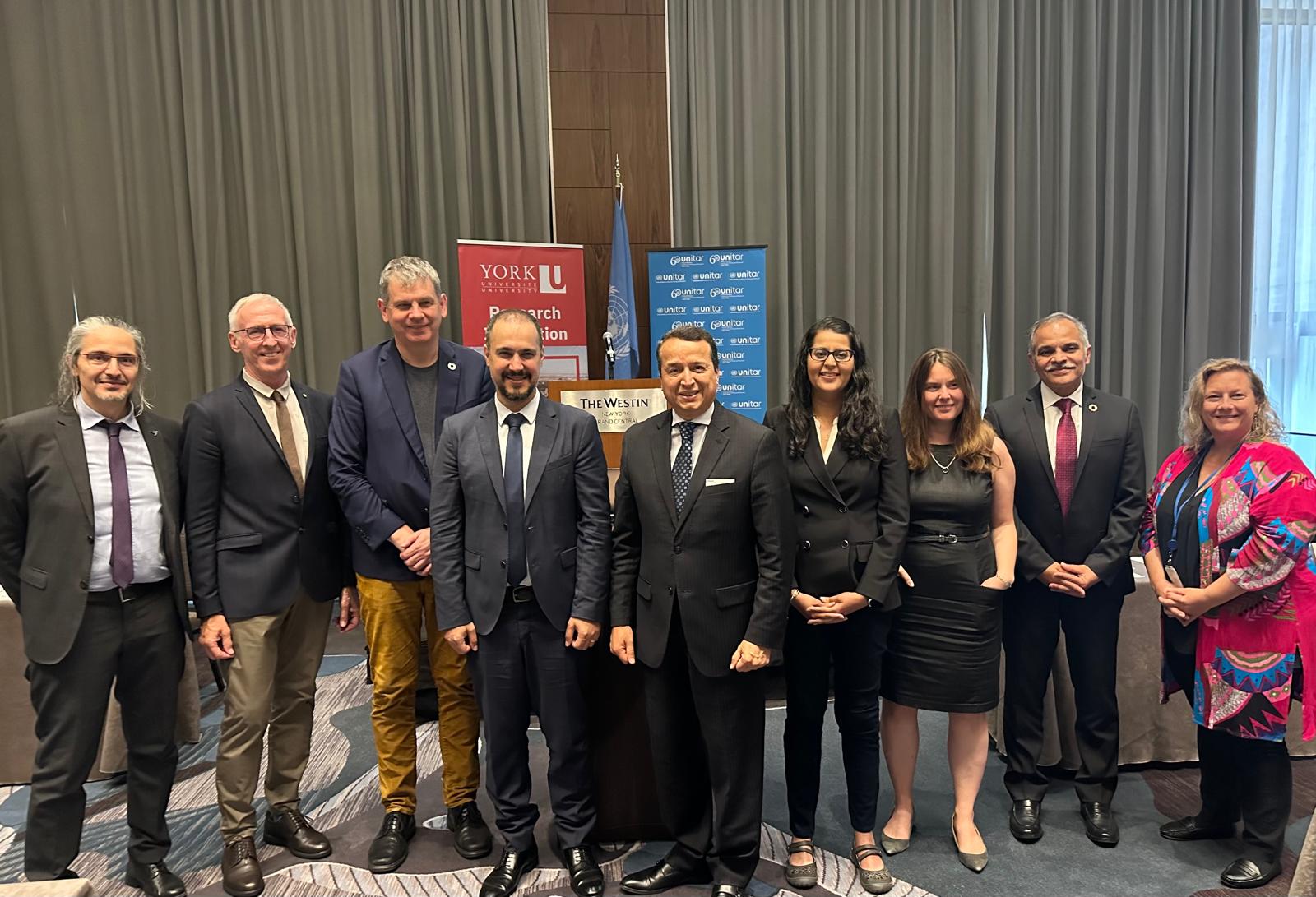 During the UGWA event, the following panellists examined innovative solutions, including scientific, technological, natural, and governance approaches, to bolster freshwater resilience, transboundary governance, and policy alignment with SDG 6 targets: Mr Alex Mejia, Director, Division for People and Social Inclusion, UNITAR, Mr Amir Asif, Vice-President, Research and Innovation, York University; Mr Federico Properzi, Chief Technical Advisor, UN-Water; Ms Dianna Kopensky, Head, Freshwater Ecosystems Unit, Marine and Freshwater Branch UNEP; Prof. Kaveh Madani Director of the United Nations University Institute for Water, Environment and Health; Prof. Sapna Sharma, York University Academic Director, UNITAR Global Water Academy; Prof. Stephanie Gora, Assistant Professor, Faculty of Civil Engineering York University; Mr. Duncan Ross, Chief of Data and Analytics, Times Higher Education; and Mr. Kevin Hall, President and Vice-Chancellor, University of Victoria.