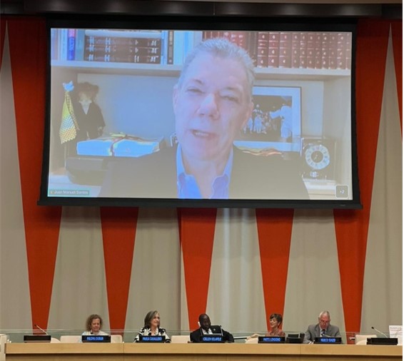 Former President of Colombia and the sole recipient of the 2016 Nobel Peace Prize, His Excellency Mr. Juan Manuel Santos connected to the event virtually, along with five other speakers who joined the audience at the venue. These speakers have each contributed immensely to the creation and the negotiation of the UN Sustainable Development Goals (SDGs). The presenters of the day included two co-authors of the book, Ms. Paula Caballero and Ms. Patti Londoño; the Permanent Representative of Botswana and ECOSOC President, His Excellency Mr. Collen Kelapile; the Director of SDG Fund, Dr. Paloma Duran; and the Head of the UNITAR New York office, Mr. Marco Suazo.