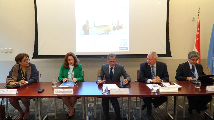 Photo 2: The Director of the General Assembly and ECOSOC Affairs Division Ms. Ruth de Miranda, Elected President of the 73rd Session of the General Assembly H.E. Ms. Maria Fernanda Espinosa Garcés, the Permanent Representative to the Mission of Singapore H.E. Mr. Burhan Gafoor, UNITAR Head of New York Office Mr. Marco Suazo, and Chief of the General Assembly Affairs Branch Mr. Kenji Nakano.