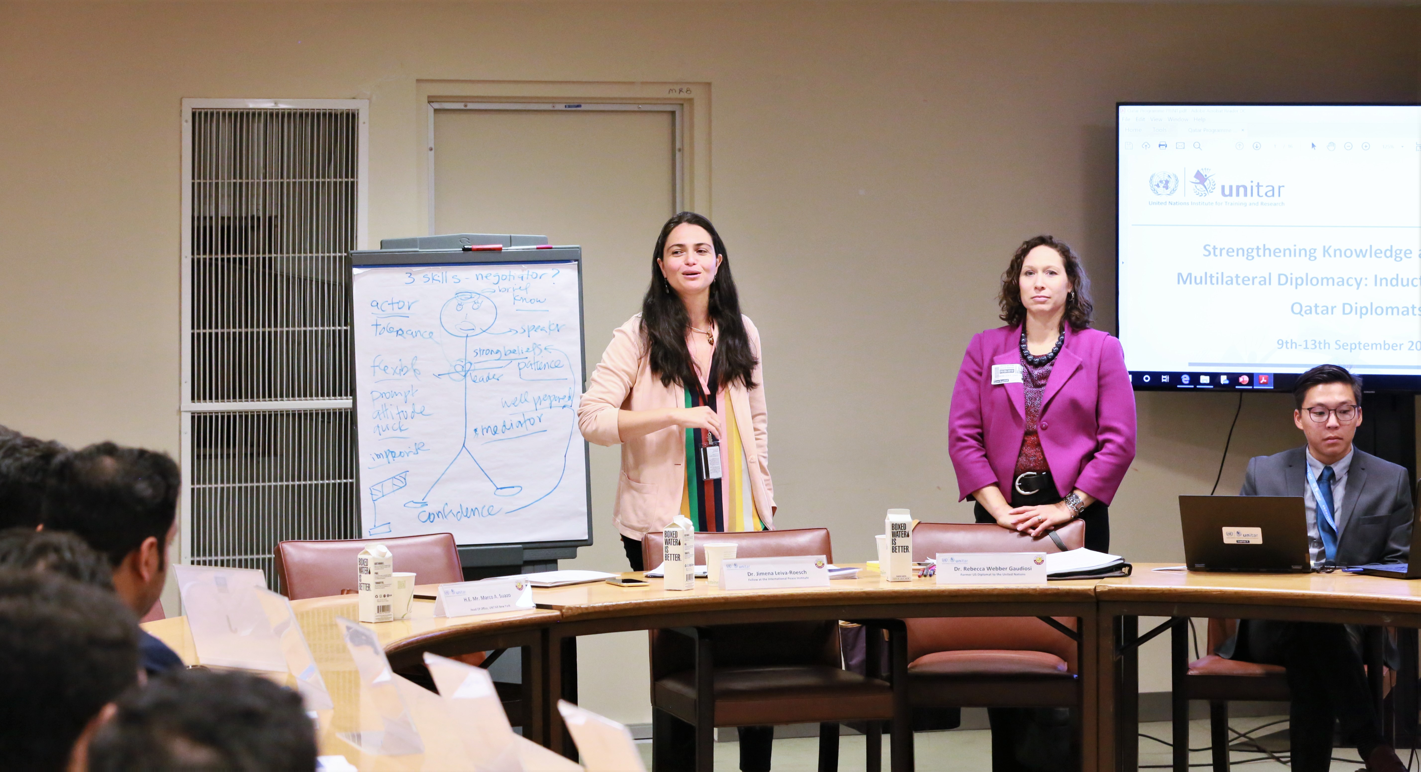 9 September 2019, New York, USA – The United Nations Institute for Training and Research’s (UNITAR) New York Office kicked off the first session of the induction course for Qatari Diplomats in Conference Room D of the United Nations Headquarters. The program for the new diplomats includes courses on negotiation, the General Assembly, the Responsibility to Protect and Rules and Procedures of the UN.