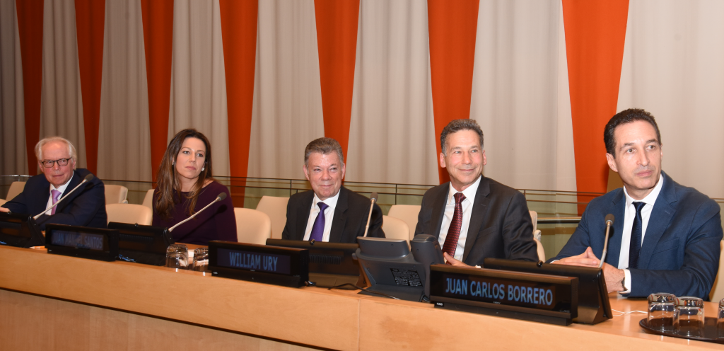 The event ended with a panel discussion including Mr. Juan Manuel Santos, Negotiation Advisor and Mediator Mr. William Ury, Founder and Managing Partner of ACON Investments Mr. Bernard Arson, and both the creators of the documentary Ms. Melodie Carli and Mr. Juan Carlos Borrero. The panel was moderated by the Director of the Outreach Division in the United Nations Mr. Maher Nasser. The discussion touched on a range of topics, such as the evolution of the peace process in Colombia, and how the documentary came to be. After the panel, attendees were invited to an event hosted at the Express Bar at the United Nations, where they had the chance to interact and mingle with those involved in the Colombian peace process and the creators of the documentary. Based on the interviews and materials in the documentary, UNITAR will be launching an e-learning course on “Strengthening Preventive Diplomacy and Multilateral Negotiation” by mid-2019.