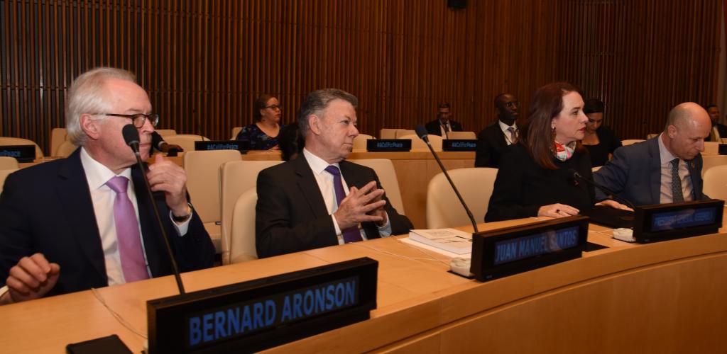 Photo 2: Founder and Managing Partner of ACON Investments Mr. Bernard Aronson, Former President of Colombia H.E. Mr. Juan Manuel Santos, and President of the 73rd Session of the General Assembly H.E. Ms. Maria Fernanda Espinosa Garcés at the event. Photo Credits: UNITAR