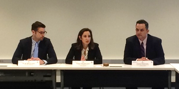 Photo 1: (from left to right) Mr. Pelayo Alvarez, UNITAR, Professor Alexandra Carter, Director of the Mediation Clinic and Professor Shawn Watts, Associate Director of the Mediation Clinic.