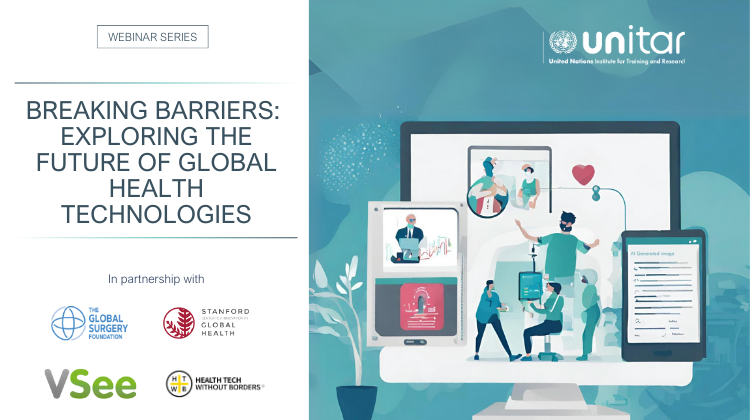 11 October 2023, Geneva, Switzerland - In collaboration with the Global Surgery Foundation, Stanford Center for Innovation in Global Health, VSee, and Health Tech Without Borders, UNITAR is pleased to announce the launch of the webinar series “Breaking Barriers: Exploring the Future of Global Health Technologies”. Health technologies have become a cornerstone in the worldwide pursuit of universal healthcare access. Their multifaceted impact encompasses enhanced healthcare efficiency, extended healthcare services reach, and secure health information sharing. These innovations foster care continuity and reduce medical errors.