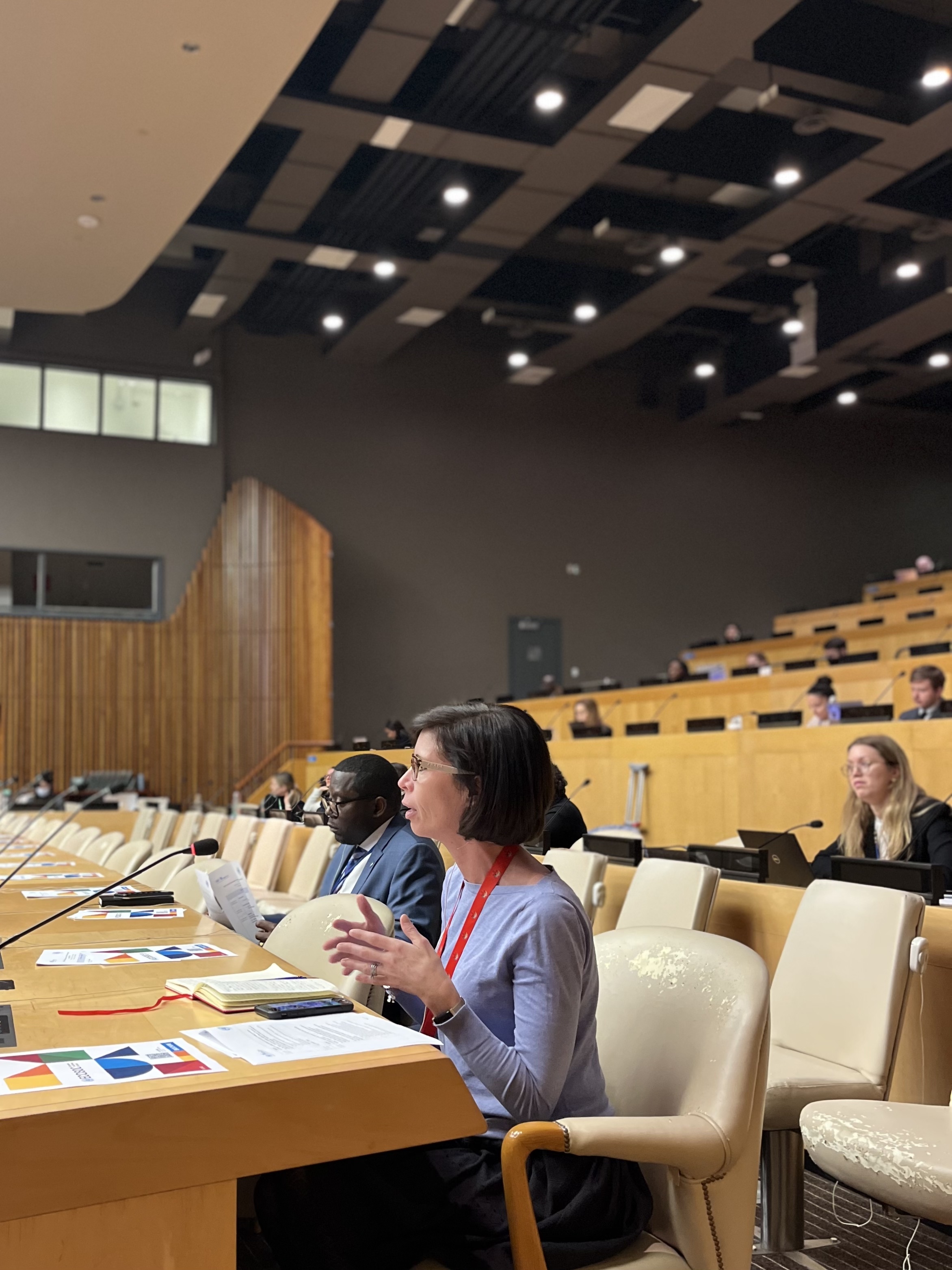 Next, Ms Chavez passed the floor to Ms Anastasia Carayanides, the Chief of the Intergovernmental Policy Section at the Office for the Coordination of Humanitarian Affairs, OCHA, who lead Session eight. Addressing the Humanitarian Segment, taking place on 21-23 June 2023, and the Transition from Relief to Development on 20 June 2023, Ms Carayanides shared statistics that put into perspective how many people are currently affected by starvation. In fact, the combined populations of Bulgaria, Italy and Zimbabwe are equal to the number of people who are at risk of starvation.