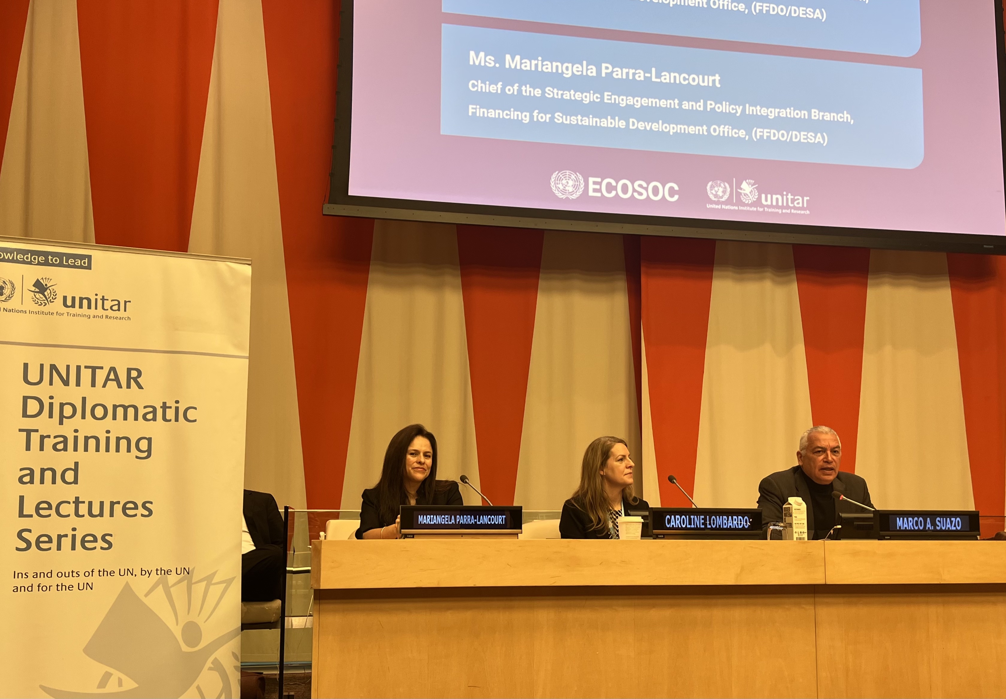 Mr Marco Suazo, the Head-of-Office of UNITAR New York, delivered opening remarks and moderated the orientation throughout the day-long event. Following the opening remarks, Mr Suazo introduced Ms Mario Barthelemy, the Director of the Office of Intergovernmental Support and Coordination for Sustainable Development (OISC.DESA), who conducted the first session, during which she explained the core functions of Economic and Social Council and the High-Level Political Forum (HLPS).
