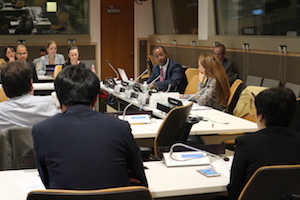 Mr. Huisman’s discussion was followed by a joint session on oversight and investigative mechanisms by Mr. David Kanja, Assistant-Secretary-General of the Office of Internal Oversight Services (OIOS), and Mr. Achamkulangare Gopinathan, Inspector of the Joint Inspection Unit (JIU), who was present through a Skype session from Geneva, Switzerland. Mr. Kanja began with an introduction of the functions of OIOS, explaining its operational independence, its reports and services to the UN Secretariat, and its unique capacity to systematically follow up on the implementation of its reported recommendations. Mr. Gopinathan followed with a presentation on the JIU’s roles, exemplifying its notion of “value for money”, results-based management (RBM), and its exceptional mandate as the only body that spans the United Nations System. The discussion with Mr. Kanja and Mr. Gopinathan brought to the table issues of assurance, transparency and independence, reporting, and the formal and informal ways in which the organizations collaborate with each other and with other relevant parties.