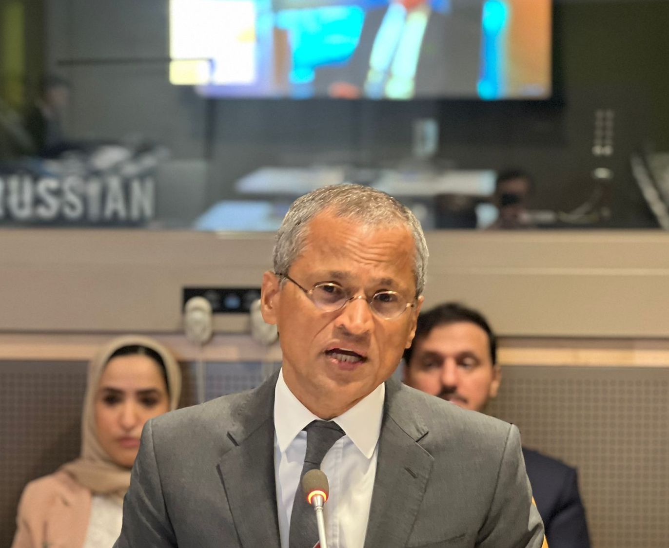 The first keynote speaker was H.E. Mr Burhan Gafoor, Permanent Representative of the Republic of Singapore to the United Nations, who began with an acknowledgement of the tragic earthquake in Morocco and invited all attendees and panellists to stand for a moment of silence. He went on to speak about the ever-important role of the UN as the only global diplomatic organization. He emphasized the pivotal role diplomacy plays and the importance of dialogue in facilitating solidarity.